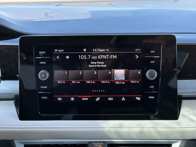 - Radio: MIB3 Discover Media AM/FM/HD -inc: 8" touchscreen navigation multifunction center display, WMA/MP3/FLAC player w/USB-C, voice control, capability for in-vehicle 4G LTE enabled Wi-Fi (cellular data plan required; includes limited trial), capability for VW Car-Net services (capabilities for certain services vary; requires enrollment or subscription), 6-speaker sound system, Bluetooth® connectivity (for compatible devices), SiriusXM w/360L (w/3-month free trial; 360L services require acceptance of Car-Net terms), App-Connect smartphone integration (w/Apple CarPlay, Android Auto and MirrorLink) via USB, wireless App-Connect smartphone integration (for compatible devices) w/multi-phone pairing capability, USB-C enhanced charging up to 45W (for compatible devices) and Qi wireless inductive charger (for compatible mobile phones and accessories) All VW Car-Net services subject to terms & limitations. Some services require a paid subscription. See dealer or vw.com/carnet for details.