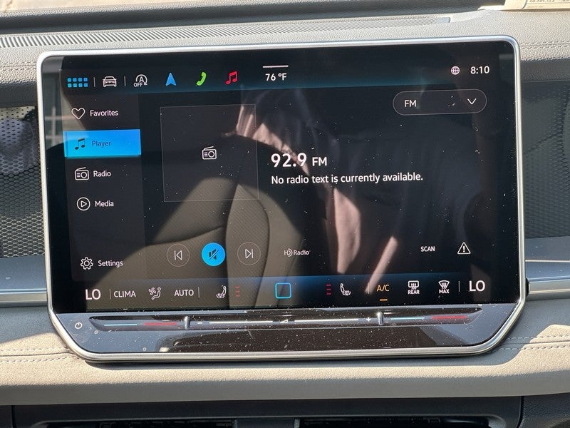 - Radio: MIB4 Composition Media Touchscreen AM/FM -inc: WMA/MP3/FLAC player w/USB, 12.9" touchscreen multi-function center display w/backlit sliders, voice control, 6 speakers + center speaker (7 speakers total) sound system, capability for in-vehicle 4G LTE enabled Wi-Fi (cellular data plan required; includes limited trial), capability for VW Car-Net services (capabilities for services vary; requires enrollment or subscription), Bluetooth® connectivity (for compatible devices), SiriusXM w/360L (w/3-month free trial subscription; 360L services require acceptance of Car-Net terms), App-Connect smartphone integration (w/Apple CarPlay, Android Auto and MirrorLink) via USB, wireless App-Connect smartphone integration (for compatible devices) w/multi-phone pairing capability, 45W fast charging (for compatible mobile phones and accessories) via USB in both rows and Qi wireless inductive charger, cooled, up to 15W (for compatible mobile phones and accessories)