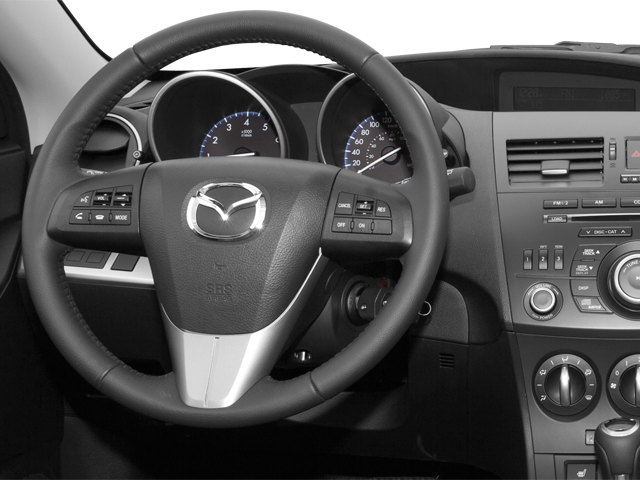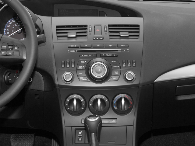 This Mazda Mazda3 is well equipped with 4-Wheel Disc Brakes, 6 Speakers, ABS brakes, Air Conditioning, Alloy wheels, AM/FM radio, AM/FM/CD/MP3 Compatible Audio System, Automatic temperature control, Brake assist, Bumpers: body-color, CD player, Cloth Seat Trim, Driver door bin, Driver vanity mirror, Dual front impact airbags, Dual front side impact airbags, Electronic Stability Control, Four wheel independent suspension, Front anti-roll bar, Front Bucket Seats, Front Center Armrest, Front dual zone A/C, Front reading lights, Illuminated entry, Leather Shift Knob, Leather steering wheel, Low tire pressure warning, Occupant sensing airbag, Outside temperature display, Overhead airbag, Panic alarm, Passenger door bin, Passenger vanity mirror, Power door mirrors, Power steering, Power windows, Rear anti-roll bar, Rear seat center armrest, Rear window defroster, Rear window wiper, Reclining Front Bucket Seats, Remote keyless entry, Speed control, Speed-sensing steering, Split folding rear seat, Spoiler, Steering wheel mounted audio controls, Tachometer, Telescoping steering wheel, Tilt steering wheel, Traction control, Trip computer, Variably intermittent wipers, and Wheels: 16" x 6.5J Alloy w/Black Center Caps.