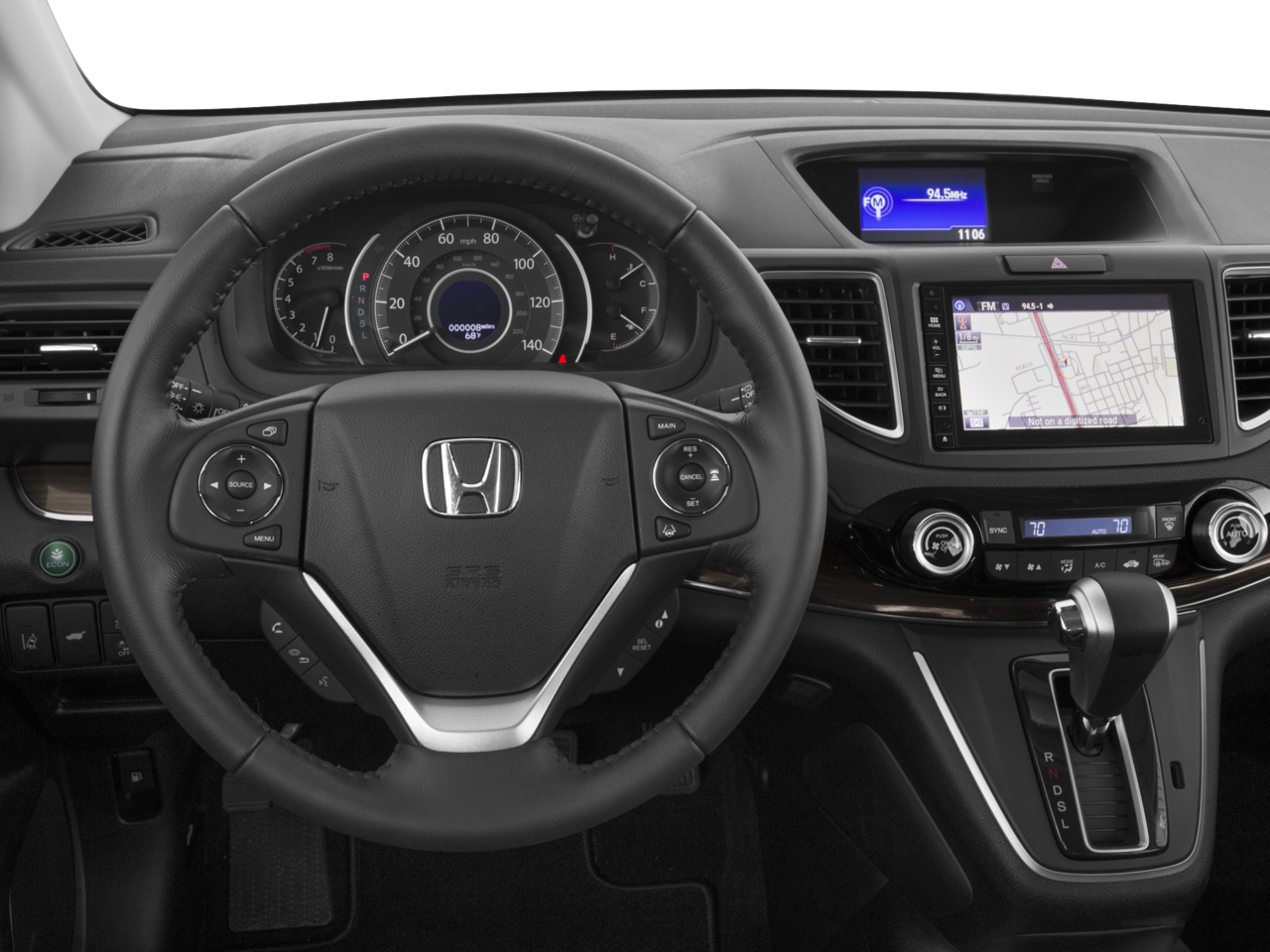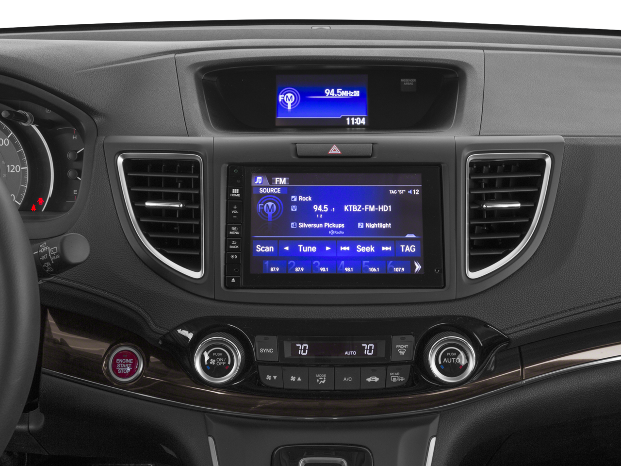 This CR-V is well equipped with AWD, 18" Alloy Wheels, 4-Wheel Disc Brakes, 5.048 Axle Ratio, 7 Speakers, ABS brakes, Air Conditioning, Alloy wheels, AM/FM radio: SiriusXM, Auto-dimming Rear-View mirror, Automatic temperature control, Brake assist, Bumpers: body-color, CD player, Compass, Delay-off headlights, Driver door bin, Driver vanity mirror, Dual front impact airbags, Dual front side impact airbags, Electronic Stability Control, Exterior Parking Camera Rear, Four wheel independent suspension, Front anti-roll bar, Front Bucket Seats, Front Center Armrest, Front dual zone A/C, Front fog lights, Front reading lights, Garage door transmitter: HomeLink, Heated door mirrors, Heated Front Bucket Seats, Heated front seats, Illuminated entry, Lane Departure Warning System, Leather Seat Trim, Leather Shift Knob, Low tire pressure warning, Memory seat, Navigation System, Occupant sensing airbag, Outside temperature display, Overhead airbag, Overhead console, Panic alarm, Passenger door bin, Passenger vanity mirror, Power door mirrors, Power driver seat, Power Liftgate, Power moonroof, Power steering, Power windows, Radio data system, Radio: AM/FM/CD/HD/SiriusXM Audio System, Rear anti-roll bar, Rear seat center armrest, Rear window defroster, Rear window wiper, Remote keyless entry, Roof rack: rails only, Security system, Speed control, Speed-sensing steering, Speed-Sensitive Wipers, Split folding rear seat, Steering wheel mounted audio controls, Tachometer, Telescoping steering wheel, Tilt steering wheel, Traction control, Trip computer, Turn signal indicator mirrors, and Variably intermittent wipers.