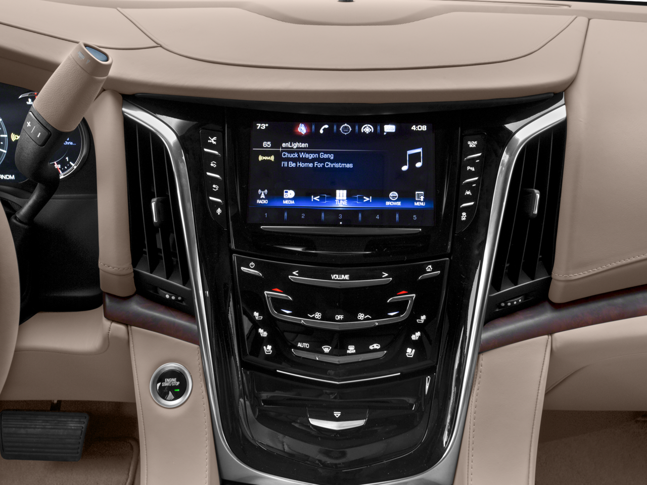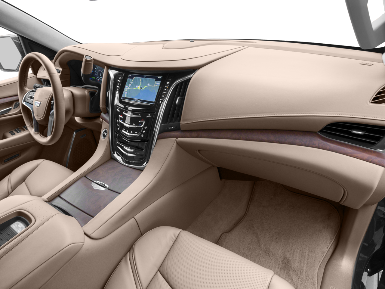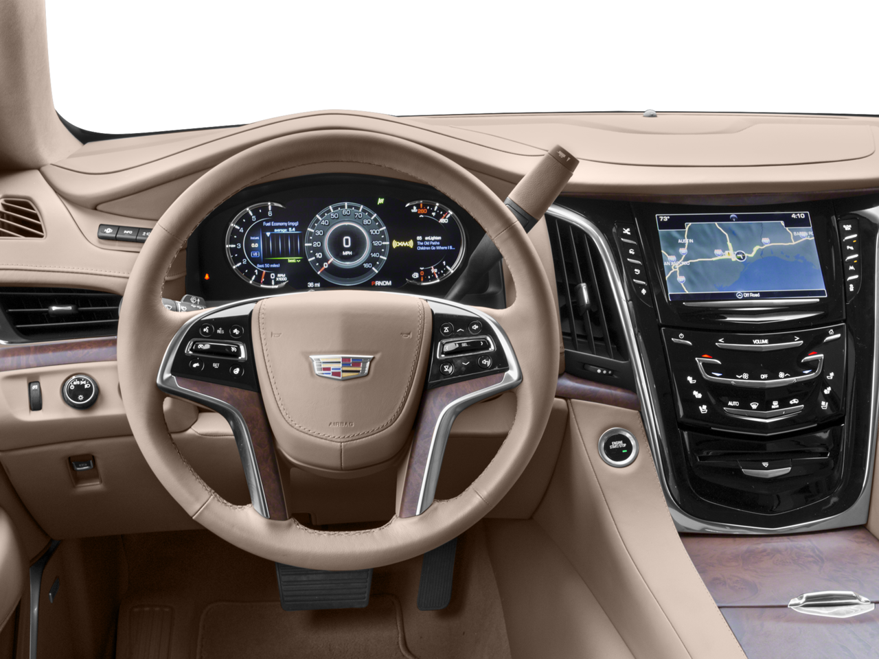 This Escalade is well equipped with Driver Assist Package (Adaptive Full-Speed Range Cruise Control, Automatic Safety Belt Tightening, Electronic Powered Parking Brake, and Front & Rear Automatic Braking), Interior Protection Package (LPO) (All-Weather 1st, 2nd & 3rd Row Floor Mats (LPO) and All-Weather Cargo Mat (LPO)), Platinum Package (Cooled Console w/Covered Storage, Dual DVD Screens, Leather Wrapped IP/Console/Door, Microfiber Sueded Headliner, Platinum Sill Plates, Premium Floor Mats, Unique Exotic Wood, and Unique Grille Design), Preferred Equipment Group 1SD (Forward Collision Alert, Illuminated Door Handles, IntelliBeam Headlamps, Lane Change Alert, Lane Keep Assist w/Lane Departure Warning, Power Tilt-Sliding Sunroof w/Express-Open/Close, Power-Retractable Assist Steps, Rear Camera Mirror, Rear Camera Washer, Rear Cross-Traffic Alert, Rear Seat Entertainment System, Reconfigurable 4-Color Head-Up Display, Second Row Bucket Seats, Side Blind Zone Alert, and VAC Power 17" Disc Brakes), Theft-Deterrent Package (Inclination Sensor, Theft-Deterrent Alarm System, and Vehicle Interior Movement Sensor), 4WD, Jet Black With Jet Black Accents Leather, 16 Speakers, 2-Position Memory For Driver's Seat Adjuster, 3.23 Axle Ratio, 3rd row seats: split-bench, 4-Wheel Disc Brakes, A/V remote, ABS brakes, Adaptive suspension, Adjustable pedals, Air Conditioning, Alloy wheels, AM/FM radio: SiriusXM, Apple CarPlay, Auto High-beam Headlights, Auto tilt-away steering wheel, Auto-dimming door mirrors, Auto-leveling suspension, Automatic temperature control, Black Front License Plate Bracket, Bodyside moldings, Bose Centerpoint Surround Sound System, Brake assist, Bumpers: body-color, CD player, Chrome Exhaust Tip, Compass, Delay-off headlights, Driver door bin, Driver vanity mirror, Dual front impact airbags, Dual front side impact airbags, DVD-Audio, Electronic Stability Control, Emergency communication system: OnStar Protection, Exterior Parking Camera Rear, Front anti-roll bar, Front Bucket Seats, Front Center Armrest w/Storage, Front dual zone A/C, Front reading lights, Front wheel independent suspension, Fully automatic headlights, Garage door transmitter, Genuine wood dashboard insert, HD Radio, Headphones, Heads-Up Display, Heated & Cooled Front Bucket Seats, Heated door mirrors, Heated front seats, Heated rear seats, Heated steering wheel, Illuminated entry, Leather Shift Knob, Leather steering wheel, Low tire pressure warning, Magnetic Ride Control Suspension, Memory seat, Navigation System, NavTraffic, Occupant sensing airbag, Outside temperature display, Overhead airbag, Overhead console, Panic alarm, Passenger door bin, Passenger vanity mirror, Pedal memory, Power door mirrors, Power driver seat, Power Liftgate, Power moonroof, Power passenger seat, Power steering, Power windows, Radio data system, Radio: Cadillac CUE Info/Media Ctrl Sys w/Embd Nav, Rain sensing wipers, Rear air conditioning, Rear anti-roll bar, Rear audio controls, Rear reading lights, Rear window defroster, Rear window wiper, Remote keyless entry, Roof rack: rails only, Security system, Semi-Aniline Leather Seating Surfaces, SiriusXM Satellite Radio, Speed control, Split folding rear seat, Spoiler, Steering wheel memory, Steering wheel mounted audio controls, Tachometer, Teles