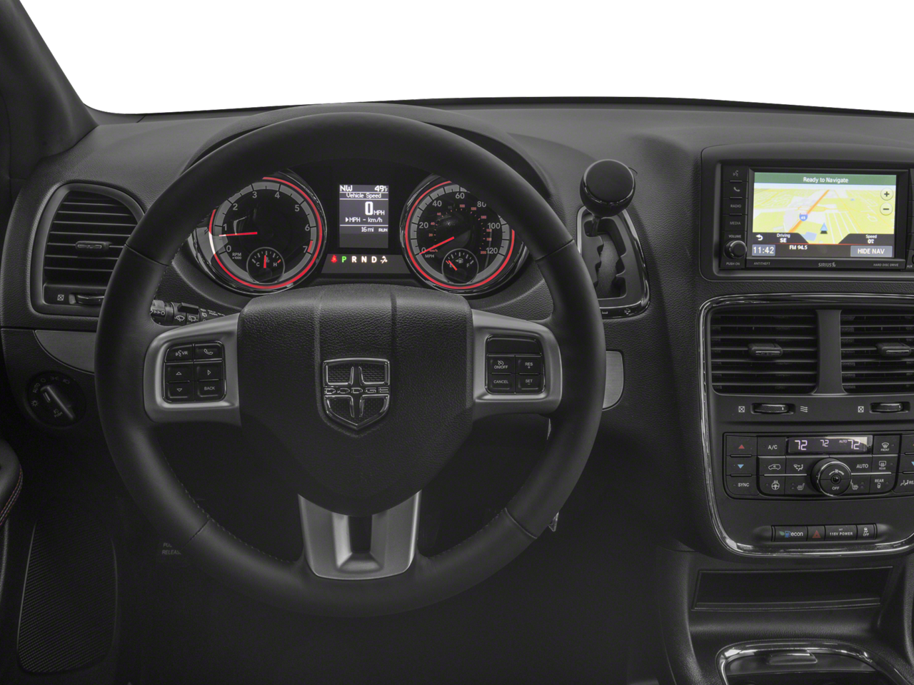 This Grand Caravan is well equipped with Quick Order Package 29N, 115V Auxiliary Power Outlet, 17" x 6.5" Aluminum Wheels, 2 Row Stow 'N Go w/Tailgate Seats, 2nd Row Buckets w/Fold-In-Floor, 3.16 Axle Ratio, 3rd row seats: split-bench, 4-Wheel Disc Brakes, 40GB Hard Drive w/28GB Available, 5-Year SiriusXM Travel Link Service, 6.5" Touchscreen Display, 9 Speakers, ABS brakes, Air Conditioning, Alloy wheels, AM/FM radio: SiriusXM, Anti-whiplash front head restraints, Audio Jack Input for Mobile Devices, Auto-dimming Rear-View mirror, Automatic temperature control, Black Side Roof Rails, Bodyside moldings, Brake assist, Bumpers: body-color, CD player, Compass, Delay-off headlights, Driver door bin, Driver vanity mirror, Driver's Seat Mounted Armrest, Dual front impact airbags, Dual front side impact airbags, DVD-Audio, Electronic Stability Control, Front anti-roll bar, Front Bucket Seats, Front dual zone A/C, Front fog lights, Front reading lights, Front wheel independent suspension, Fully automatic headlights, Garage door transmitter, Garmin Navigation System, Heated door mirrors, Heated front seats, Heated rear seats, Heated steering wheel, Illuminated entry, Integrated Roof Rail Crossbars, Knee airbag, Leather Shift Knob, Leather Trimmed Bucket Seats, Low tire pressure warning, Manufacturer's Statement of Origin, Navigation system: Garmin, Occupant sensing airbag, Outside temperature display, Overhead airbag, Overhead console, Panic alarm, ParkView Rear Back-Up Camera, Passenger door bin, Passenger seat mounted armrest, Passenger vanity mirror, Performance Suspension, Power door mirrors, Power driver seat, Power Liftgate, Power passenger seat, Power steering, Power windows, Radio data system, Radio: 430 Nav, Radio: 430 Nav (DISC), Rear air conditioning, Rear reading lights, Rear window defroster, Rear window wiper, Reclining 3rd row seat, Remote keyless entry, Security system, SiriusXM Travel Link, Speed control, Split folding rear seat, Spoiler, Steering wheel mounted audio controls, Tachometer, Telescoping steering wheel, Tilt steering wheel, Traction control, Trip computer, and Variably intermittent wipers.