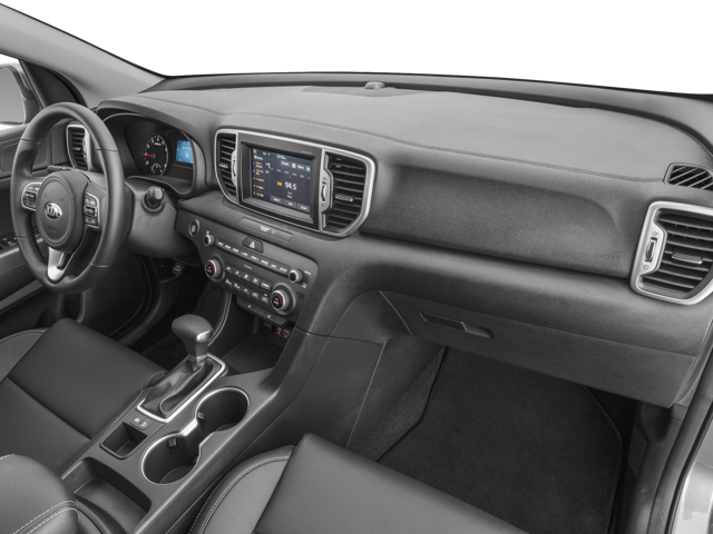 This Sportage is well equipped with 18" Alloy Wheels, 3-Step Heated Front Bucket Seats, 3.064 Axle Ratio, 4-Wheel Disc Brakes, 6 Speakers, ABS brakes, Air Conditioning, Alloy wheels, AM/FM radio: SiriusXM, Android Auto, Automatic temperature control, Brake assist, Bumpers: body-color, Cargo Cover, Cargo Mat, Carpet Floor Mats, Delay-off headlights, Driver door bin, Driver vanity mirror, Dual front impact airbags, Dual front side impact airbags, Electronic Stability Control, Exterior Parking Camera Rear, Four wheel independent suspension, Front anti-roll bar, Front Bucket Seats, Front Center Armrest, Front dual zone A/C, Front fog lights, Front reading lights, Fully automatic headlights, Heated door mirrors, Heated front seats, Illuminated entry, Leather Seat Trim, Leather Shift Knob, Low tire pressure warning, Mud Guards, Occupant sensing airbag, Outside temperature display, Overhead airbag, Overhead console, Panic alarm, Passenger door bin, Passenger vanity mirror, Power door mirrors, Power driver seat, Power steering, Power windows, Radio: AM/FM/SiriusXM, Rear anti-roll bar, Rear seat center armrest, Rear window defroster, Rear window wiper, Remote keyless entry, Remote Start (Push-Button Start), Roof rack: rails only, Security system, Speed control, Speed-sensing steering, Split folding rear seat, Spoiler, Steering wheel mounted audio controls, Tachometer, Telescoping steering wheel, Tilt steering wheel, Traction control, Trip computer, Variably intermittent wipers, and Wheel Locks.
