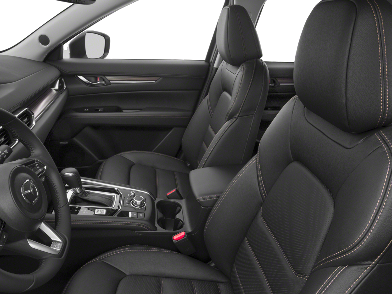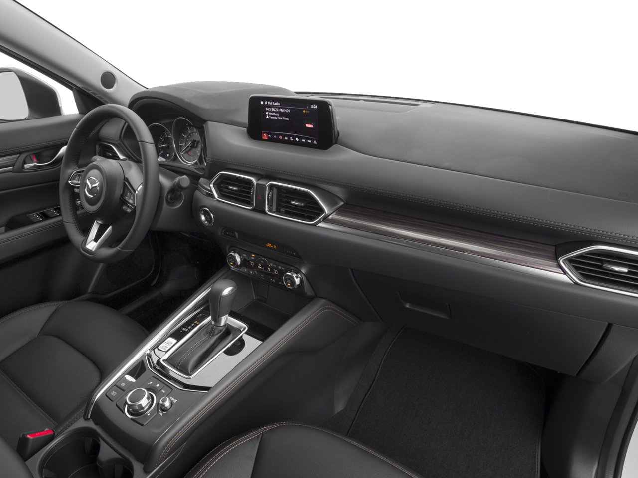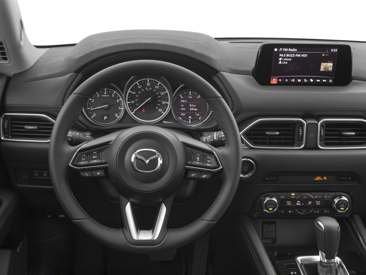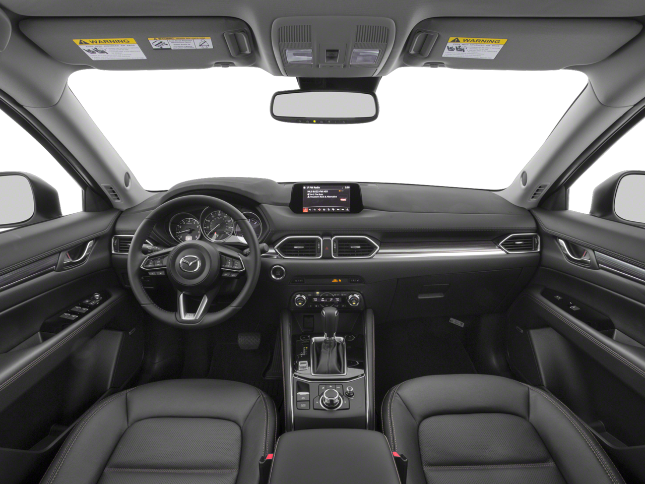 This Mazda CX-5 is well equipped with 10 Speakers, 19 x 7J Aluminum Alloy Wheels, 4-Wheel Disc Brakes, 4.325 Axle Ratio, ABS brakes, Air Conditioning, Alloy wheels, AM/FM radio: SiriusXM, Auto High-beam Headlights, Auto-dimming Rear-View mirror, Automatic temperature control, Bose 10-Speaker Audio Sound System, Brake assist, Bumpers: body-color, Delay-off headlights, Driver door bin, Driver vanity mirror, Dual front impact airbags, Dual front side impact airbags, Electronic Stability Control, Emergency communication system, Exterior Parking Camera Rear, Four wheel independent suspension, Front anti-roll bar, Front Bucket Seats, Front Center Armrest, Front dual zone A/C, Front fog lights, Front reading lights, Fully automatic headlights, Garage door transmitter: HomeLink, Heated door mirrors, Heated front seats, Heated Front Sport Shape Seats, Illuminated entry, Leather Seat Trim, Leather Shift Knob, Low tire pressure warning, Mazda Navigation System, Memory seat, Navigation System, Occupant sensing airbag, Outside temperature display, Overhead airbag, Overhead console, Panic alarm, Passenger door bin, Passenger vanity mirror, Power door mirrors, Power driver seat, Power Liftgate, Power moonroof, Power passenger seat, Power steering, Power windows, Radio data system, Radio: AM/FM/HD Audio System, Rain sensing wipers, Rear anti-roll bar, Rear reading lights, Rear seat center armrest, Rear window defroster, Rear window wiper, Remote keyless entry, Speed control, Speed-sensing steering, Split folding rear seat, Spoiler, Steering wheel mounted audio controls, Tachometer, Telescoping steering wheel, Tilt steering wheel, Traction control, Trip computer, Turn signal indicator mirrors, and Variably intermittent wipers.