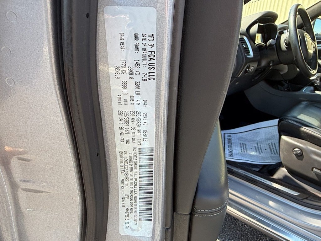 This Durango is well equipped with Anodized Platinum Appearance Package, Quick Order Package 2BP Anodized Platinum (Black Headlamp Bezels, Black Roof Rails, Cargo Compartment Cover, Integrated Roof Rail Crossbars, Leather Trimmed Bucket Seats, Platinum Badging, Platinum Chrome Exterior Door Handles, Platinum Fog Lamp Bezels, Platinum Front Fascias, Platinum Interior Accents, Platinum Mirrors Caps, Platinum Premium Grille w/Black Texture, Platinum Rear Lower Fascia, Premium Wrapped I/P Bezel, Sill w/Platinum Accent, and Wheels: 20" x 8.0" Satin Carbon Finish), Technology Group (Adaptive Cruise Control w/Stop, Advanced Brake Assist, Blind Spot & Cross Path Detection, Full Speed Forward Collision Warning Plus, and Lane Departure Warning Plus), Trailer Tow & Skid Plate Group (7 & 4 Pin Wiring Harness, Class IV Receiver Hitch, Fuel Tank Skid Plate Shield, Heavy-Duty Engine Cooling, and Rear Load Leveling Suspension), AWD, 2nd Row Mini Console w/Cupholders, 2nd Row Seat Mounted Inboard Armrests, 3.45 Rear Axle Ratio, 3rd Row Floor Mat & Mini Console, 3rd row seats: split-bench, 4-Wheel Disc Brakes, 6-Passenger Seating, 9 Speakers, ABS brakes, Air Conditioning, Alloy wheels, AM/FM radio: SiriusXM, Anti-whiplash front head restraints, Apple CarPlay, Apple CarPlay/Android Auto, Audio memory, Auto High-beam Headlights, Auto-dimming door mirrors, Auto-dimming Rear-View mirror, Automatic temperature control, Black Headlamp Bezels (DISC), Brake assist, Bumpers: body-color, Compass, Delay-off headlights, Driver door bin, Driver vanity mirror, Dual front impact airbags, Dual front side impact airbags, Electronic Stability Control, Emergency communication system: Roadside Assistance/9-1-1 Call, Four wheel independent suspension, Front anti-roll bar, Front Bucket Seats, Front Center Armrest w/Storage, Front dual zone A/C, Front fog lights, Front License Plate Bracket, Front reading lights, Fully automatic headlights, Garage door transmitter, Google Android Auto, Heated door mirrors, Heated front seats, Heated rear seats, Heated steering wheel, High-Intensity Discharge Headlights, Illuminated entry, Knee airbag, Low tire pressure warning, Lux Leather Trimmed Bucket Seats, Memory seat, Navigation system: Garmin, Occupant sensing airbag, Outside temperature display, Overhead airbag, Overhead console, Panic alarm, ParkView Rear Back-Up Camera, Passenger door bin, Passenger vanity mirror, Power door mirrors, Power driver seat, Power Liftgate, Power moonroof, Power passenger seat, Power steering, Power windows, Radio data system, Radio: Uconnect 4C Nav w/8.4" Display, Rain sensing wipers, Rear air conditioning, Rear anti-roll bar, Rear reading lights, Rear seat center armrest, Rear window defroster, Rear window wiper, Remote keyless entry, Roof rack, Security system, Speed control, Speed-Sensitive Wipers, Split folding rear seat, Spoiler, Steering wheel mounted audio controls, Tachomet