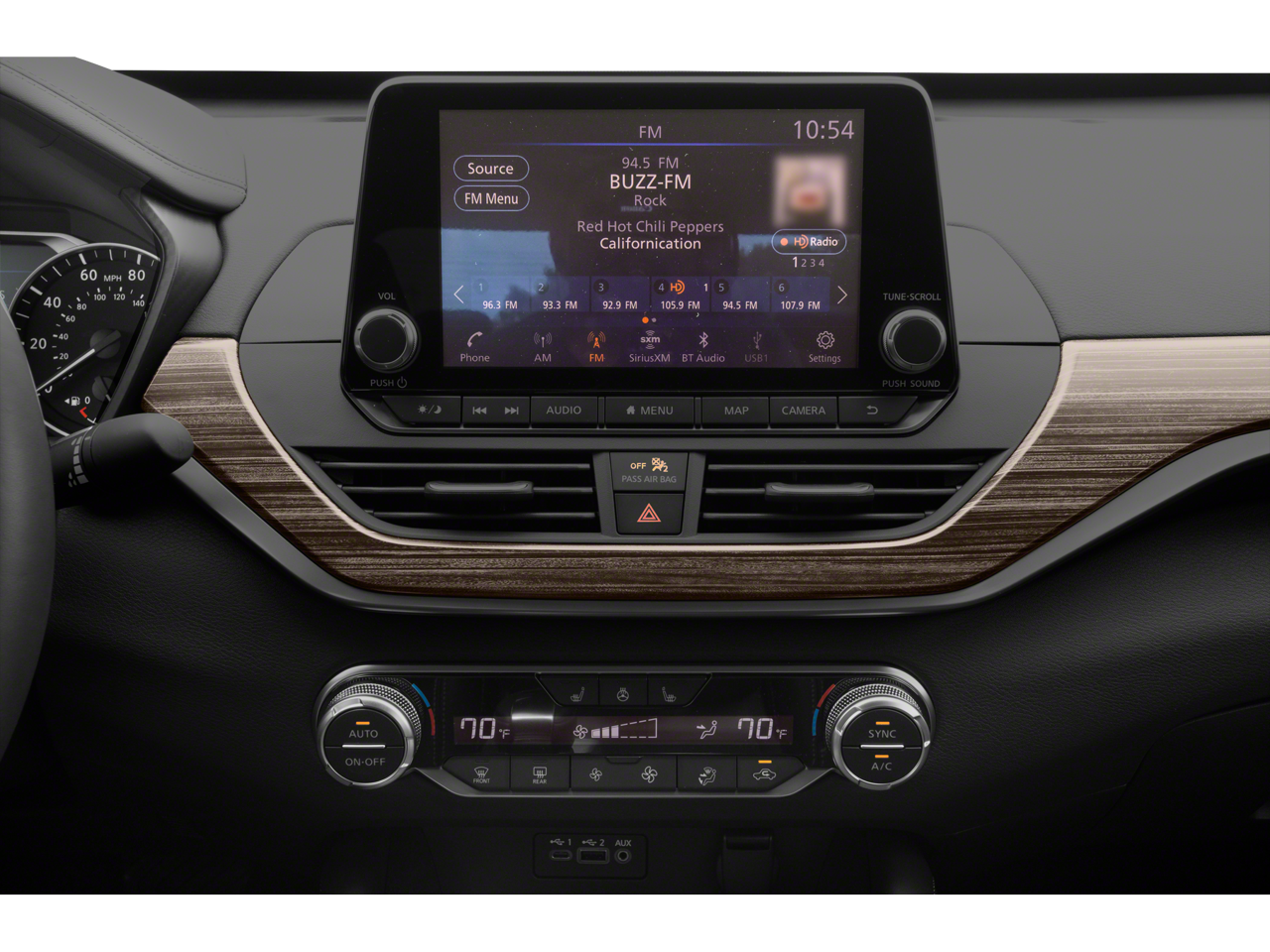 This Altima is well equipped with CVT with Xtronic, 17" Alloy Wheels, 4-Wheel Disc Brakes, 6 Speakers, ABS brakes, Air Conditioning, Alloy wheels, AM/FM radio: SiriusXM, Auto High-beam Headlights, Auto-dimming Rear-View mirror, Automatic temperature control, Blind Spot Warning, Body-Colored Splash Guards, Brake assist, Bumpers: body-color, Cloth Seat Trim, Delay-off headlights, Driver door bin, Driver vanity mirror, Dual front impact airbags, Dual front side impact airbags, Electronic Stability Control, Floor Mats/Trunk Mat/Hideaway Nets, Four wheel independent suspension, Front anti-roll bar, Front Bucket Seats, Front Center Armrest w/Storage, Front dual zone A/C, Front fog lights, Front reading lights, Fully automatic headlights, Garage door transmitter: HomeLink, Heated Front Bucket Seats, Heated front seats, Illuminated entry, Knee airbag, Low tire pressure warning, NissanConnect featuring Apple CarPlay and Android Auto, Occupant sensing airbag, Outside temperature display, Overhead airbag, Overhead console, Panic alarm, Passenger door bin, Passenger vanity mirror, Power door mirrors, Power driver seat, Power moonroof, Power steering, Power windows, Radio data system, Radio: AM/FM Audio System, Rear anti-roll bar, Rear reading lights, Rear seat center armrest, Rear side impact airbag, Rear window defroster, Remote keyless entry, Security system, Speed control, Speed-sensing steering, Split folding rear seat, Steering wheel mounted audio controls, Tachometer, Telescoping steering wheel, Tilt steering wheel, Traction control, Trip computer, Turn signal indicator mirrors, and Variably intermittent wipers.