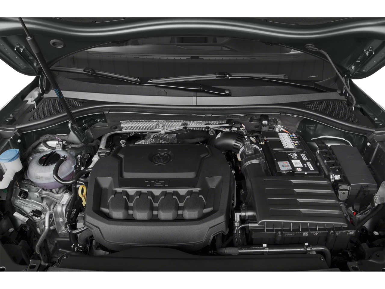 This Tiguan is well equipped with AWD, 3.33 Axle Ratio, 4-Wheel Disc Brakes, 4-Wheel Independent Suspension, 6 Speakers, ABS brakes, Air Conditioning, Alloy wheels, AM/FM radio: SiriusXM, Automatic temperature control, Brake assist, Bumpers: body-color, Compass, Delay-off headlights, Driver door bin, Driver vanity mirror, Dual front impact airbags, Dual front side impact airbags, Electronic Stability Control, Exterior Parking Camera Rear, Forward collision: FCW w/Autonomous Emergency Braking mitigation, Four wheel independent suspension, Front anti-roll bar, Front Bucket Seats, Front Center Armrest, Front dual zone A/C, Front reading lights, Fully automatic headlights, Heated door mirrors, Heated Front Comfort Seats, Heated front seats, Illuminated entry, Leather Shift Knob, Low tire pressure warning, Occupant sensing airbag, Outside temperature display, Overhead airbag, Overhead console, Panic alarm, Passenger door bin, Passenger vanity mirror, Perforated V-Tex Leatherette Seating Surfaces, Power door mirrors, Power driver seat, Power steering, Power windows, Radio data system, Radio: Composition Media AM/FM/HD, Rear anti-roll bar, Rear reading lights, Rear seat center armrest, Rear window defroster, Rear window wiper, Remote CD player, Remote keyless entry, Roof rack: rails only, Security system, Speed control, Speed-sensing steering, Split folding rear seat, Spoiler, Steering wheel mounted audio controls, Tachometer, Telescoping steering wheel, Tilt steering wheel, Traction control, Trip computer, Turn signal indicator mirrors, Variably intermittent wipers, and Wheels: 17" Wide Multi-Spoke 2-Tone Alloy.