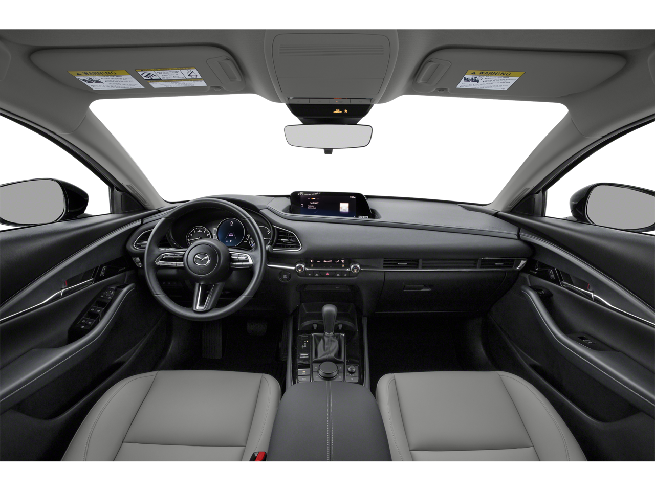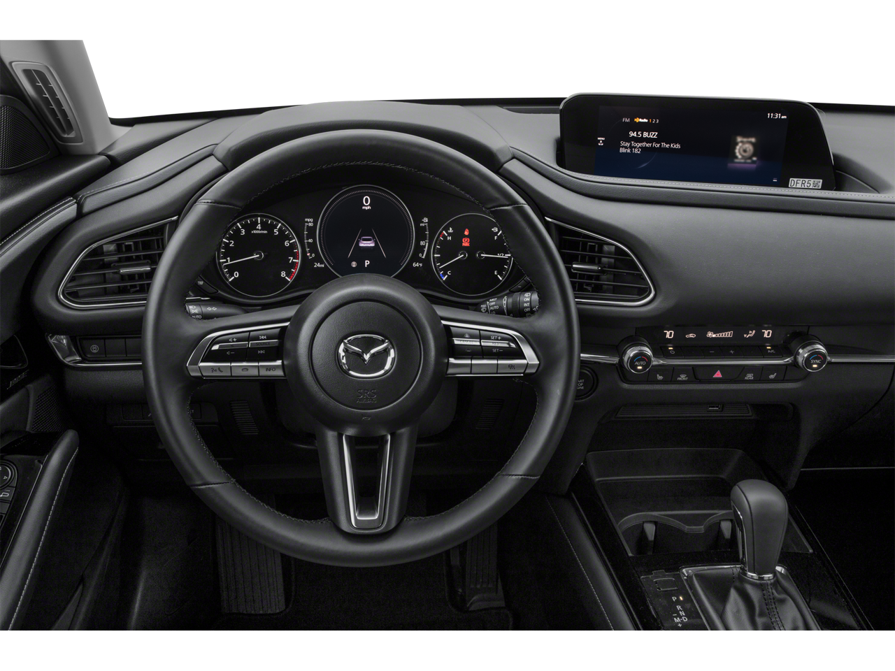 This Mazda CX-30 is well equipped with Preferred Package (Blind Spot Monitoring w/Rear Cross Traffic Alert, Dual-Zone Automatic Climate Control System, Exterior Mirrors w/Memory Positioning, Front Grille Black Gloss Paint, Gloss Painted Speaker Grille, Illuminated Vanity Mirrors, Leather-Wrapped Steering Wheel & Gear Shift Knob, Mazda Advanced Keyless Entry, Overhead Console w/Sunglass Holder, Rear Privacy Glass, Rear Seat Armrest w/Cupholders, Shark Fin Antenna, and Side Mirror Turn Lamps), 12 Speakers, 18" x 7J Alloy Wheels, 3.626 Axle Ratio, 4-Wheel Disc Brakes, ABS brakes, Air Conditioning, Alloy wheels, AM/FM radio: SiriusXM, AppLink/Apple CarPlay and Android Auto, Auto High-beam Headlights, Automatic temperature control, Brake assist, Bumpers: body-color, Compass, Delay-off headlights, Driver door bin, Driver vanity mirror, Dual front impact airbags, Dual front side impact airbags, Electronic Stability Control, Emergency communication system: MAZDA CONNECT, Exterior Parking Camera Rear, Front anti-roll bar, Front Bucket Seats, Front Center Armrest, Front dual zone A/C, Front reading lights, Front wheel independent suspension, Fully automatic headlights, Heated Front Bucket Seats, Heated front seats, Illuminated entry, Knee airbag, Leather Shift Knob, Leather steering wheel, Leatherette Seat Trim, Low tire pressure warning, MAZDA CONNECT Infotainment System Voice Command, Memory seat, Occupant sensing airbag, Outside temperature display, Overhead airbag, Overhead console, Panic alarm, Passenger door bin, Passenger vanity mirror, Power door mirrors, Power driver seat, Power steering, Power windows, Radio data system, Radio: AM/FM Audio System, Rain sensing wipers, Rear seat center armrest, Rear window defroster, Rear window wiper, Remote keyless entry, Snowflake White Pearl Mica Paint, Speed control, Speed-sensing steering, Split folding rear seat, Spoiler, Steering wheel mounted audio controls, Tachometer, Telescoping steering wheel, Tilt steering wheel, Traction control, Trip computer, Turn signal indicator mirrors, Variably intermittent wipers, and Wheel Locks.