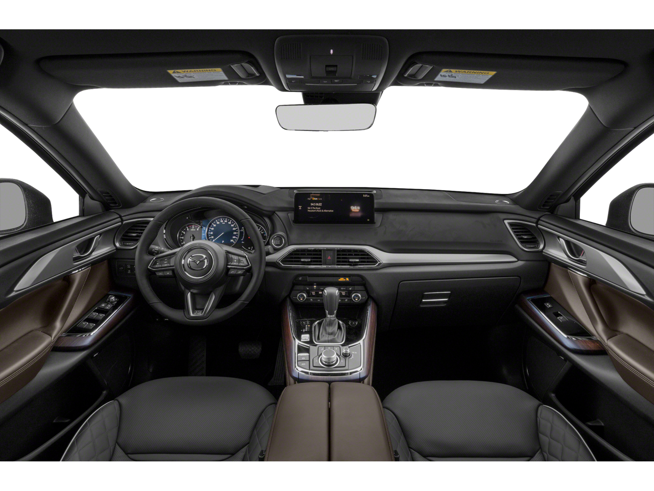 This Mazda CX-9 is well equipped with AWD, 12 Speakers, 3rd row seats: bench, 4-Wheel Disc Brakes, ABS brakes, Aha Internet Radio, Air Conditioning, Alloy wheels, AM/FM radio: SiriusXM, AppLink/Apple CarPlay and Android Auto, Auto High-beam Headlights, Auto-dimming Rear-View mirror, Automatic temperature control, Axle Ratio: 4.411, Brake assist, Bumpers: body-color, Compass, Delay-off headlights, Driver door bin, Driver vanity mirror, Dual front impact airbags, Dual front side impact airbags, E911 Automatic Emergency Notification, Electronic Stability Control, Emergency communication system: MAZDA CONNECT, Four wheel independent suspension, Front anti-roll bar, Front Bucket Seats, Front Center Armrest, Front dual zone A/C, Front fog lights, Front reading lights, Fully automatic headlights, Garage door transmitter: HomeLink, Genuine wood door panel insert, Heads-Up Display, Heated door mirrors, Heated front seats, Heated rear seats, Heated steering wheel, Heated/Ventilated Front Bucket Seats, Illuminated entry, Infotainment System Voice Command, Leather Shift Knob, Leather steering wheel, Low tire pressure warning, Machine Gray Metallic Paint, Mazda Connected Services, Mazda Navigation System, Memory seat, Nappa Leather Seat Trim, Navigation System, Occupant sensing airbag, Outside temperature display, Overhead airbag, Overhead console, Pandora Internet Radio, Panic alarm, Passenger door bin, Passenger vanity mirror, Power door mirrors, Power driver seat, Power Liftgate, Power moonroof, Power passenger seat, Power steering, Power windows, Radio Broadcast Data System Program Information, Radio data system, Radio: AM/FM Sound System w/Bose Audio, Rain sensing wipers, Rear air conditioning, Rear anti-roll bar, Rear reading lights, Rear seat center armrest, Rear window defroster, Rear window wiper, Remote keyless entry, Roof rack: rails only, SiriusXM Satellite Radio, SMS Text Msg Audio Delivery & Reply, Speed control, Speed-sensing steering, Split folding rear seat, Spoiler, Steering wheel mounted audio controls, Stitcher Internet Radio, Tachometer, Telescoping steering wheel, Tilt steering wheel, Traction control, Trip computer, Turn signal indicator mirrors, Variably intermittent wipers, Ventilated front seats, and Wheels: 20" x 8.5J Aluminum Alloy.