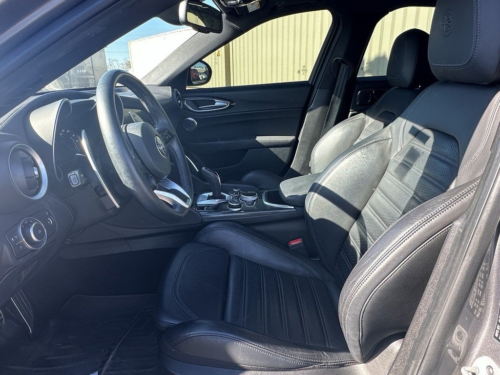 This Giulia is well equipped with Active Assist 2 Package Ti Sport (Active Blind Spot Assist, Adaptive Cruise Control w/Stop, Auto High Beam Headlamp Control, Auto-Dimming Exterior Mirrors, Driver Attention Alert, Highway Assist System, Infrared Windshield, Intelligent Speed Assist (ISA), Lane Keep Assist, Traffic Jam Assist, and Traffic Sign Recognition), Carbon Package (Black Headliner, Carbon Fiber Exterior Mirrors, Carbon Fiber Illuminated Sill Plates, Carbon Fiber Rocker Panel, Carbon Fiber V Scudetto Grille, Dark Miron Badging, Dark Miron Headlamp Bezel Finish, Genuine Carbon Fiber Interior Trim, Leather Dash & Upper Doors, Perforated Leather Shift Knob, Sport Leather Seat, and Sport Leather-Wrapped Steering Wheel), Premium Package (14 Speakers harman/kardon Premium Audio, Cargo Net, Cargo Tie Down Loops, Grocery Bag Hooks, Heated Rear Seat, Thatcham Security Equipment, and Wireless Charging Pad), Quick Order Package 22U Ti Sport (Aluminum Interior Trim, Aluminum Steering Column Mounted Paddle Shifters, Bright Aluminum Pedals, Colored Brake Calipers, Dark Exhaust Tips, Gloss Black Window Surround Moldings, Limited Slip Differential Rear Axle, Manual Adjustable Thigh Support, Power Adjust 8-Way Driver Seat, Power Adjustable Bolster, Q2 Badge, Sport Front & Rear Fascias, Sport Leather Seats, and Wheels: 19" x 8.0" Bright 5-Hole Aluminum), 1 Year Trial (Registration Required), 4-Wheel Disc Brakes, 8 Speakers, ABS brakes, Air Conditioning, Alloy wheels, AM/FM radio: SiriusXM, Apple CarPlay/Android Auto, Auto-dimming Rear-View mirror, Automatic temperature control, Brake assist, Bumpers: body-color, Compass, Delay-off headlights, Driver door bin, Driver vanity mirror, Dual front impact airbags, Dual front side impact airbags, Electronic Stability Control, Exterior Parking Camera Rear, Four wheel independent suspension, Front anti-roll bar, Front Bucket Seats, Front Center Armrest, Front dual zone A/C, Front reading lights, Fully automatic headlights, Garage door transmitter, Genuine wood console insert, Genuine wood dashboard insert, Genuine wood door panel insert, Gloss Yellow Calipers w/Black Script, Heated door mirrors, Heated front seats, Heated steering wheel, High intensity discharge headlights: Bi-Xenon, Illuminated entry, Knee airbag, Leather Seats, Leather Shift Knob, Leather steering wheel, Low tire pressure warning, Memory seat, Monochromatic Center Wheel Caps, Occupant sensing airbag, Outside temperature display, Overhead airbag, Overhead console, P