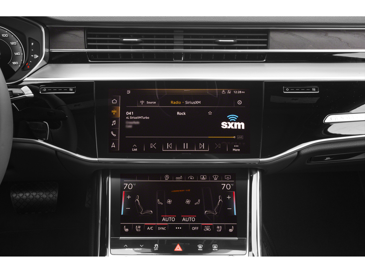 - Radio: MMI Navigation Plus -inc: MMI touch response w/10.1" upper and 8.6" lower screen, Audi connect CARE, PRIME & PLUS (limited time subscription), Audi smartphone interface w/wired Android Auto and wireless Apple CarPlay, SiriusXM all access service w/3-month trial subscription and Audi music interface w/front and rear USB ports (data+charge)