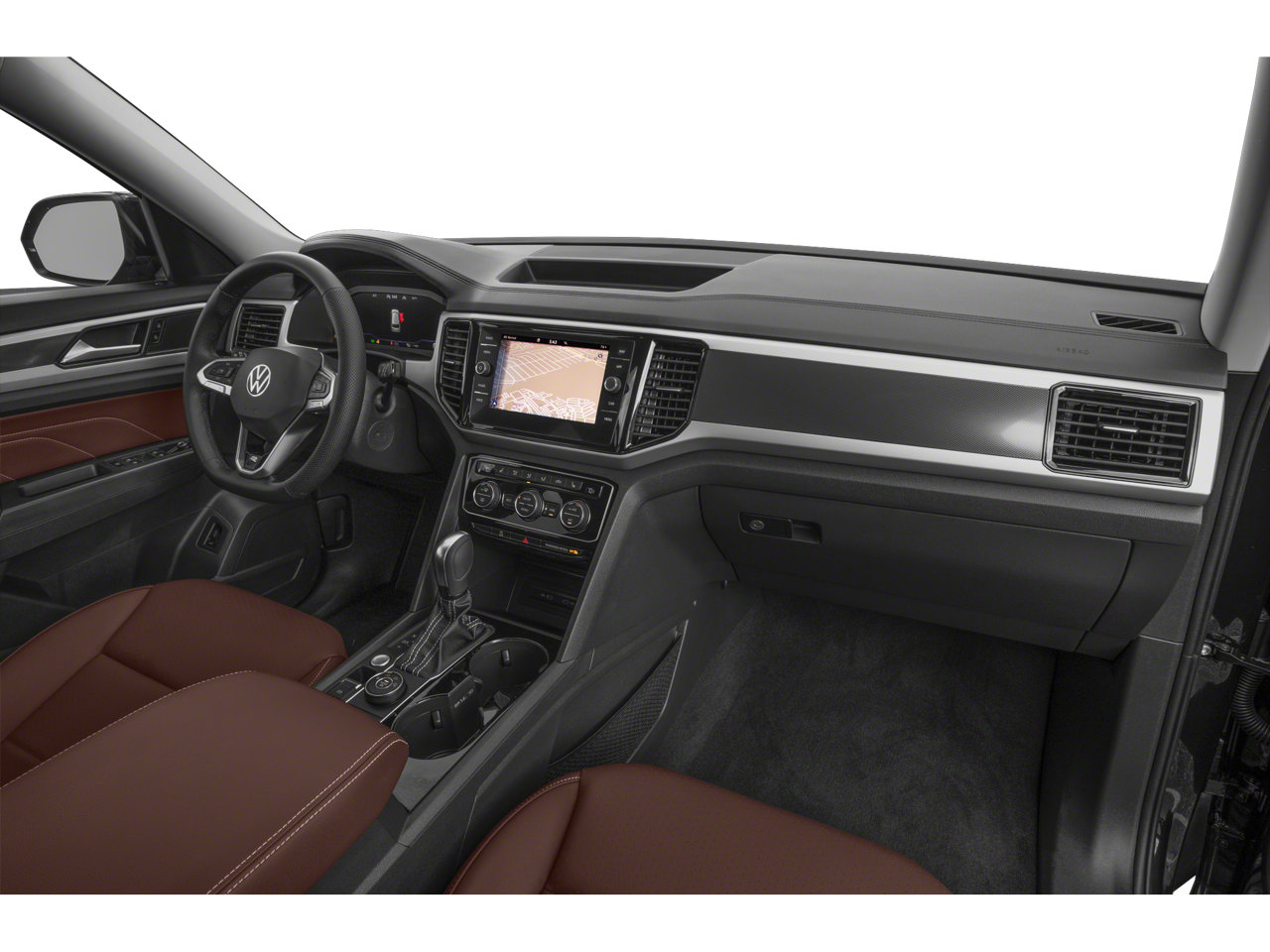 This Atlas is well equipped with Volkswagen Certified Pre-Owned Certified, Navigation System, 3.60 Axle Ratio, 3rd row seats: split-bench, 4-Wheel Disc Brakes, 6 Speakers, ABS brakes, Air Conditioning, Alloy wheels, Auto High-beam Headlights, Auto-dimming Rear-View mirror, Automatic temperature control, Brake assist, Bumpers: body-color, Compass, Delay-off headlights, Driver door bin, Driver vanity mirror, Dual front impact airbags, Dual front side impact airbags, Electronic Stability Control, Emergency communication system: VW Car-Net services (capabilities require enrollment or subscription), Exterior Parking Camera Rear, Four wheel independent suspension, Front anti-roll bar, Front Bucket Seats, Front Center Armrest, Front dual zone A/C, Front fog lights, Front reading lights, Fully automatic headlights, Heated Comfort Front Bucket Seats, Heated door mirrors, Heated front seats, Heated steering wheel, Illuminated entry, Leather Shift Knob, Low tire pressure warning, Memory seat, Occupant sensing airbag, Outside temperature display, Overhead airbag, Overhead console, Panic alarm, Passenger door bin, Passenger vanity mirror, Perforated V-Tex Leatherette Seating Surfaces, Power door mirrors, Power driver seat, Power Liftgate, Power moonroof, Power passenger seat, Power steering, Power windows, Radio data system, Rain sensing wipers, Rear air conditioning, Rear anti-roll bar, Rear reading lights, Rear seat center armrest, Rear window defroster, Rear window wiper, Remote keyless entry, Roof rack: rails only, Security system, Speed control, Speed-sensing steering, Split folding rear seat, Spoiler, Sport steering wheel, Standard Suspension, Steering wheel mounted audio controls, Tachometer, Telescoping steering wheel, Tilt steering wheel, Traction control, Trip computer, Turn signal indicator mirrors, Variably intermittent wipers, and Wheels: 21" 2-Tone Machined Alloy.
