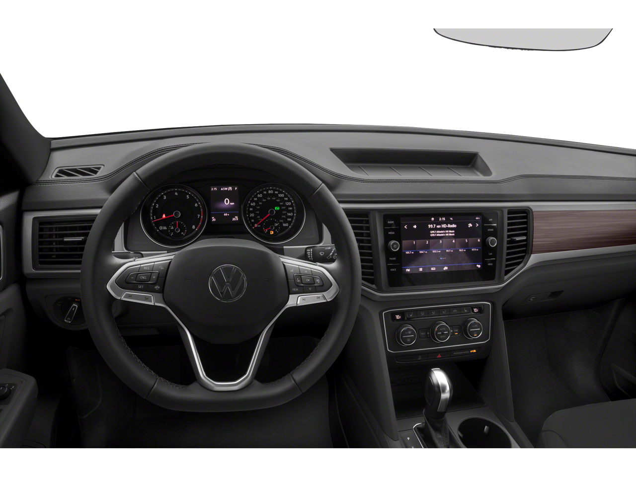 This Atlas is well equipped with 12 Speakers, 2nd-Row Dual Captain's Chairs, 3.60 Axle Ratio, 3rd row seats: split-bench, 4-Wheel Disc Brakes, ABS brakes, Air Conditioning, Alloy wheels, Auto High-beam Headlights, Auto-dimming Rear-View mirror, Automatic temperature control, Brake assist, Bumpers: body-color, Compass, Delay-off headlights, Driver door bin, Driver vanity mirror, Dual front impact airbags, Dual front side impact airbags, Electronic Stability Control, Emergency communication system: VW Car-Net services (capabilities require enrollment or subscription), Four wheel independent suspension, Front anti-roll bar, Front Bucket Seats, Front Center Armrest, Front dual zone A/C, Front fog lights, Front reading lights, Fully automatic headlights, Heated door mirrors, Heated front seats, Heated rear seats, Heated steering wheel, Heavy Duty Trunk Liner w/VW CarGo Blocks, Htd/Actively Ventilated Comfort Front Sport Seats, Illuminated entry, Leather Shift Knob, Low tire pressure warning, Memory seat, Navigation System, Occupant sensing airbag, Outside temperature display, Overhead airbag, Overhead console, Panic alarm, Passenger door bin, Passenger vanity mirror, Perforated Vienna Leather Seating Surfaces, Power door mirrors, Power driver seat, Power Liftgate, Power moonroof, Power passenger seat, Power steering, Power windows, Privacy Cover, Radio data system, Rain sensing wipers, Rear air conditioning, Rear anti-roll bar, Rear audio controls, Rear reading lights, Rear seat center armrest, Rear window defroster, Rear window wiper, Remote keyless entry, Roadside Assistance Kit, Roof rack: rails only, Rubber Mats Kit - Captain's Chairs, Security system, Speed control, Speed-sensing steering, Split folding rear seat, Spoiler, Standard Suspension, Steering wheel mounted audio controls, Tachometer, Telescoping steering wheel, Tilt steering wheel, Traction control, Trip computer, Turn signal indicator mirrors, Variably intermittent wipers, Ventilated front seats, and Wheels: 20" 5-Spoke 2-Tone Machined Alloy.