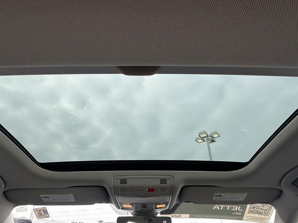 This Jetta is well equipped with 4-Wheel Disc Brakes, 9 Speakers, ABS brakes, Active Blind Spot Monitor, Air Conditioning, Alloy wheels, AM/FM radio: SiriusXM with 360L, Auto High-beam Headlights, Auto-dimming Rear-View mirror, Automatic temperature control, Brake assist, Bumpers: body-color, Delay-off headlights, Driver door bin, Driver vanity mirror, Dual front impact airbags, Dual front side impact airbags, Electronic Stability Control, Emergency communication system: VW Car-Net services (capabilities require enrollment or subscription), Exterior Parking Camera Rear, Front anti-roll bar, Front Bucket Seats, Front Center Armrest, Front dual zone A/C, Front reading lights, Front wheel independent suspension, Fully automatic headlights, Heated door mirrors, Heated Front Comfort Sport Seats, Heated front seats, Heated rear seats, Heated steering wheel, Illuminated entry, Leather Shift Knob, Low tire pressure warning, Occupant sensing airbag, Outside temperature display, Overhead airbag, Overhead console, Panic alarm, Passenger door bin, Passenger vanity mirror, Perforated V-Tex Leatherette Seat Trim, Power door mirrors, Power driver seat, Power moonroof: Panoramic, Power steering, Power windows, Radio data system, Radio: MIB3 Composition Media w/8" Touchscreen, Rain sensing wipers, Rear anti-roll bar, Rear reading lights, Rear seat center armrest, Rear window defroster, Remote CD player, Remote keyless entry, Speed control, Speed-sensing steering, Split folding rear seat, Steering wheel mounted audio controls, Tachometer, Telescoping steering wheel, Tilt steering wheel, Traction control, Trip computer, Variably intermittent wipers, and Wheels: 17" 2-Tone Machined Alloy.