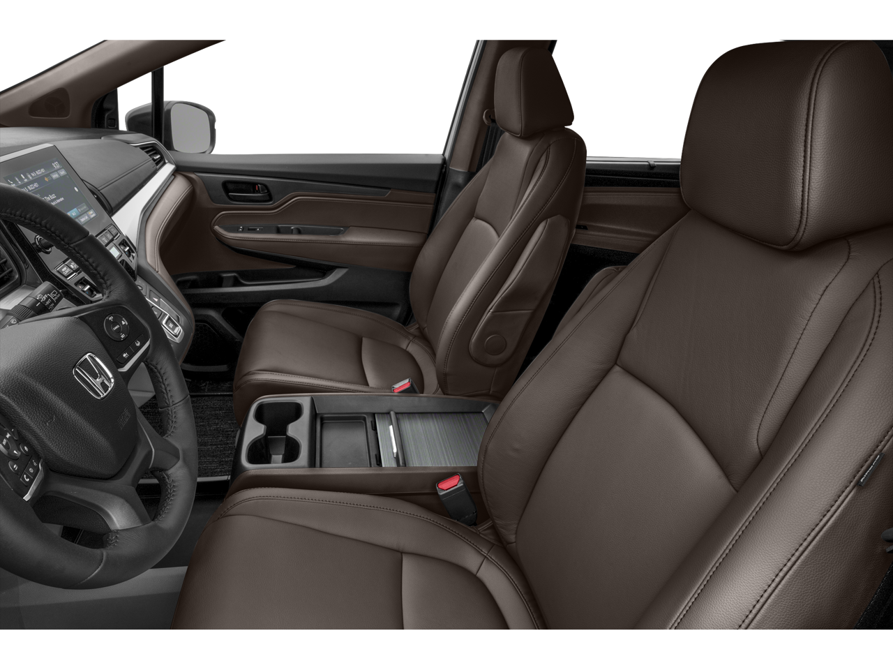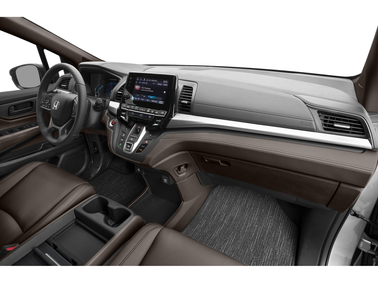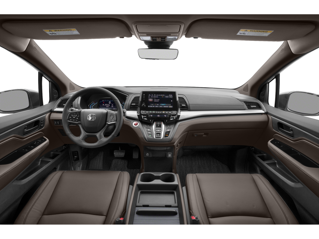 This Odyssey is well equipped with 18" Machine-Finished Alloy Wheels, 3.61 Axle Ratio, 3rd row seats: split-bench, 4-Wheel Disc Brakes, 7 Speakers, A/V remote: CabinControl, ABS brakes, Adaptive Cruise Control: Adaptive Cruise Control (ACC) with Low-Speed Follow, Air Conditioning, Alloy wheels, AM/FM radio: SiriusXM, Anti-whiplash front head restraints, Apple CarPlay/Android Auto, Auto High-beam Headlights, Auto-dimming Rear-View mirror, Automatic temperature control, Blind Spot Information (BSI) System warning, Brake assist, Bumpers: body-color, Delay-off headlights, Driver door bin, Driver vanity mirror, Driver's Seat Mounted Armrest, Dual front impact airbags, Dual front side impact airbags, Electronic Stability Control, Exterior Parking Camera Rear, Forward collision: Collision Mitigation Braking System (CMBS) + FCW mitigation, Four wheel independent suspension, Front anti-roll bar, Front Bucket Seats, Front dual zone A/C, Front fog lights, Front reading lights, Fully automatic headlights, Garage door transmitter: HomeLink, Heated door mirrors, Heated Front Bucket Seats, Heated front seats, Illuminated entry, Knee airbag, Lane departure: Lane Keeping Assist System (LKAS) active, Leather Seat Trim, Leather steering wheel, Low tire pressure warning, Memory seat, Occupant sensing airbag, Outside temperature display, Overhead airbag, Overhead console, Panic alarm, Passenger door bin, Passenger seat mounted armrest, Passenger vanity mirror, Power door mirrors, Power driver seat, Power Liftgate, Power moonroof, Power passenger seat, Power steering, Power windows, Radio data system, Radio: 160-Watt AM/FM/HD/SiriusXM Audio System, Rear air conditioning, Rear anti-roll bar, Rear reading lights, Rear seat center armrest, Rear window defroster, Rear window wiper, Reclining 3rd row seat, Remote keyless entry, Security system, Speed control, Speed-sensing steering, Speed-Sensitive Wipers, Split folding rear seat, Spoiler, Steering wheel mounted audio controls, Tachometer, Telescoping steering wheel, Tilt steering wheel, Traction control, Trip computer, Turn signal indicator mirrors, and Variably intermittent wipers.