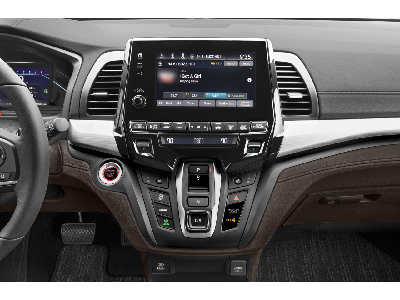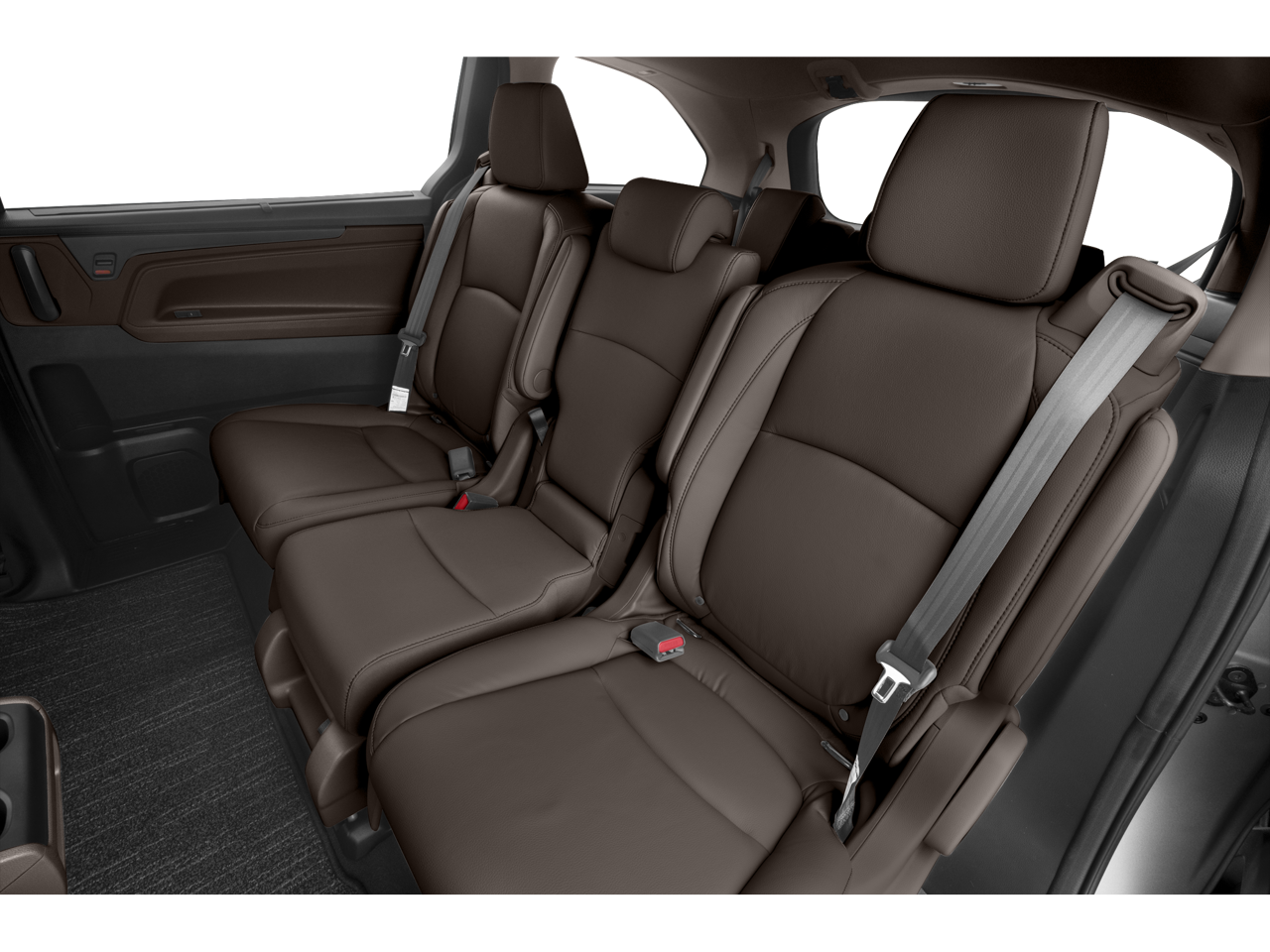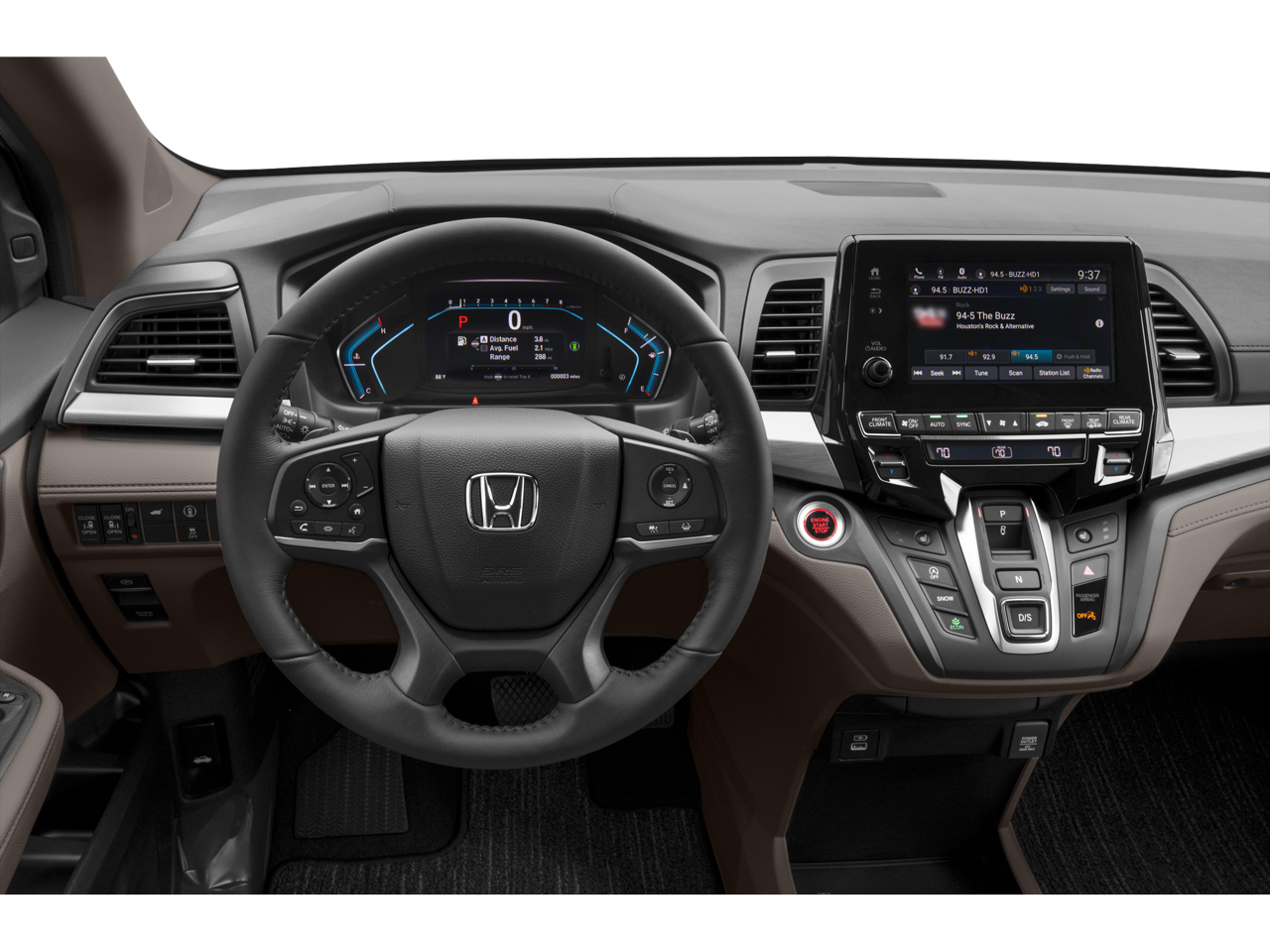 This Odyssey is well equipped with 18" Machine-Finished Alloy Wheels, 3.61 Axle Ratio, 3rd row seats: split-bench, 4-Wheel Disc Brakes, 7 Speakers, A/V remote: CabinControl, ABS brakes, Adaptive Cruise Control: Adaptive Cruise Control (ACC) with Low-Speed Follow, Air Conditioning, Alloy wheels, AM/FM radio: SiriusXM, Anti-whiplash front head restraints, Apple CarPlay/Android Auto, Auto High-beam Headlights, Auto-dimming Rear-View mirror, Automatic temperature control, Blind Spot Information (BSI) System warning, Brake assist, Bumpers: body-color, Delay-off headlights, Driver door bin, Driver vanity mirror, Driver's Seat Mounted Armrest, Dual front impact airbags, Dual front side impact airbags, Electronic Stability Control, Exterior Parking Camera Rear, Forward collision: Collision Mitigation Braking System (CMBS) + FCW mitigation, Four wheel independent suspension, Front anti-roll bar, Front Bucket Seats, Front dual zone A/C, Front fog lights, Front reading lights, Fully automatic headlights, Garage door transmitter: HomeLink, Heated door mirrors, Heated Front Bucket Seats, Heated front seats, Illuminated entry, Knee airbag, Lane departure: Lane Keeping Assist System (LKAS) active, Leather Seat Trim, Leather steering wheel, Low tire pressure warning, Memory seat, Occupant sensing airbag, Outside temperature display, Overhead airbag, Overhead console, Panic alarm, Passenger door bin, Passenger seat mounted armrest, Passenger vanity mirror, Power door mirrors, Power driver seat, Power Liftgate, Power moonroof, Power passenger seat, Power steering, Power windows, Radio data system, Radio: 160-Watt AM/FM/HD/SiriusXM Audio System, Rear air conditioning, Rear anti-roll bar, Rear reading lights, Rear seat center armrest, Rear window defroster, Rear window wiper, Reclining 3rd row seat, Remote keyless entry, Security system, Speed control, Speed-sensing steering, Speed-Sensitive Wipers, Split folding rear seat, Spoiler, Steering wheel mounted audio controls, Tachometer, Telescoping steering wheel, Tilt steering wheel, Traction control, Trip computer, Turn signal indicator mirrors, and Variably intermittent wipers.