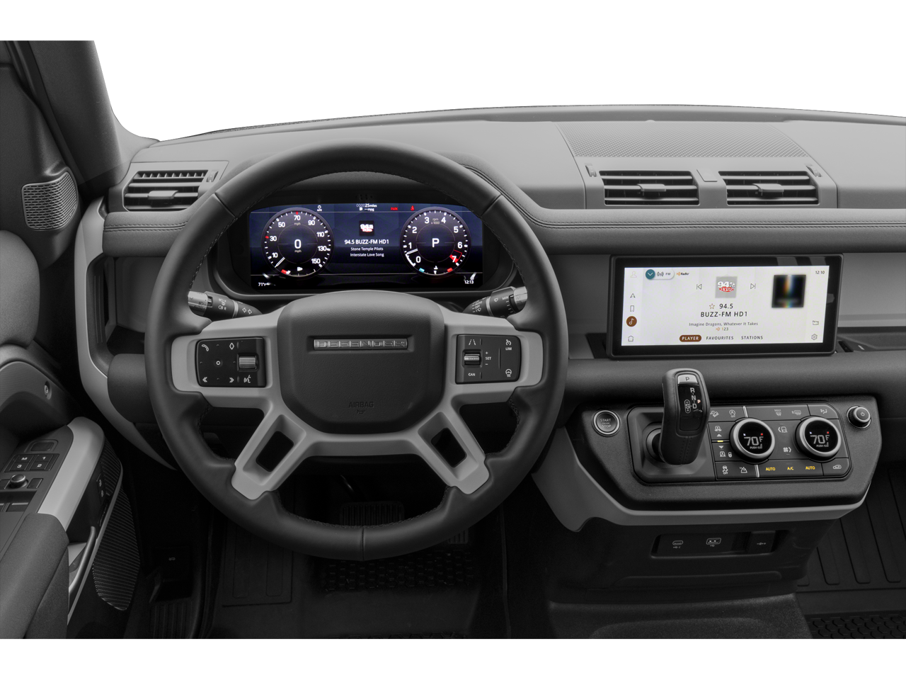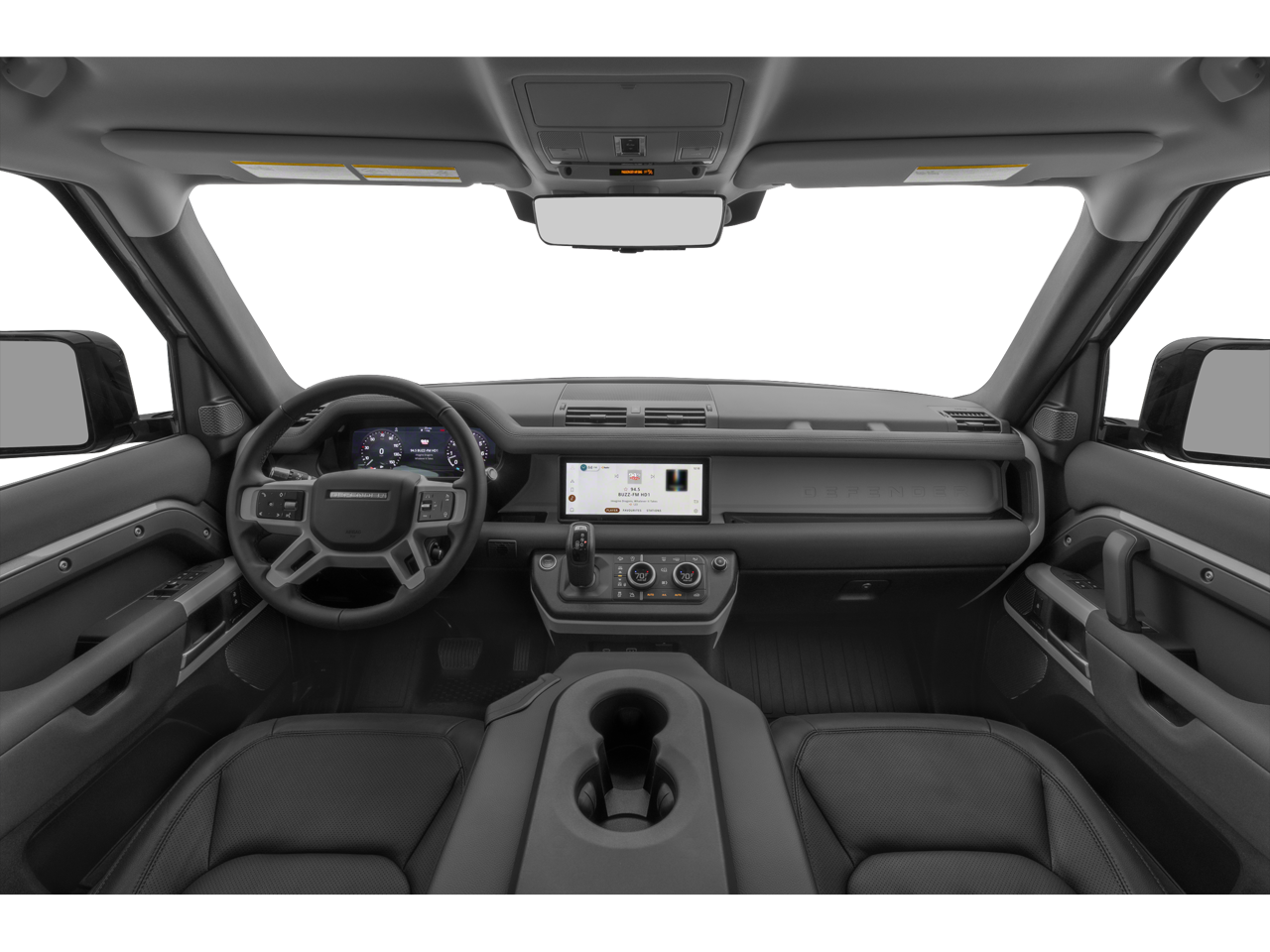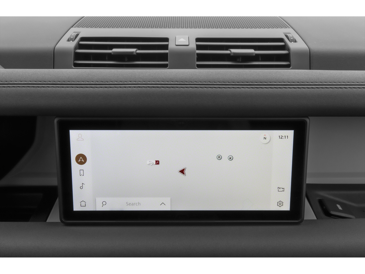 This Defender 90 is well equipped with 11 Speakers, 12-Way Semi-Powered Heated Seats, 3.55 Axle Ratio, 4-Wheel Disc Brakes, ABS brakes, Air Conditioning, Alloy wheels, AM/FM radio: SiriusXM, Apple CarPlay & Android Auto, Auto High-beam Headlights, Auto-dimming door mirrors, Auto-dimming Rear-View mirror, Automatic temperature control, Brake assist, Bumpers: body-color, Compass, Delay-off headlights, Driver door bin, Driver vanity mirror, Dual front impact airbags, Dual front side impact airbags, Electronic Stability Control, Four wheel independent suspension, Front anti-roll bar, Front Bucket Seats, Front Center Armrest, Front dual zone A/C, Front reading lights, Fully automatic headlights, Garage door transmitter: HomeLink, Grained Leather Seat Trim, Heated door mirrors, Heated front seats, Illuminated entry, Leather Shift Knob, Leather steering wheel, Low tire pressure warning, Navigation system: Connected Navigation PIVI Pro, Occupant sensing airbag, Outside temperature display, Overhead airbag, Overhead console, Panic alarm, Passenger door bin, Passenger vanity mirror, Power door mirrors, Power driver seat, Power passenger seat, Power steering, Power windows, Radio data system, Radio: 400W 11 Speaker Meridian Sound System, Rain sensing wipers, Rear anti-roll bar, Rear fog lights, Rear reading lights, Rear seat center armrest, Rear window defroster, Rear window wiper, Remote keyless entry, Roof rack: rails only, Security system, Speed control, Speed-sensing steering, Speed-Sensitive Wipers, Split folding rear seat, Steering wheel mounted audio controls, Tachometer, Telescoping steering wheel, Tilt steering wheel, Traction control, Trip computer, Variably intermittent wipers, Weather band radio, and Wheels: 19" Gloss Black Style 6010.
