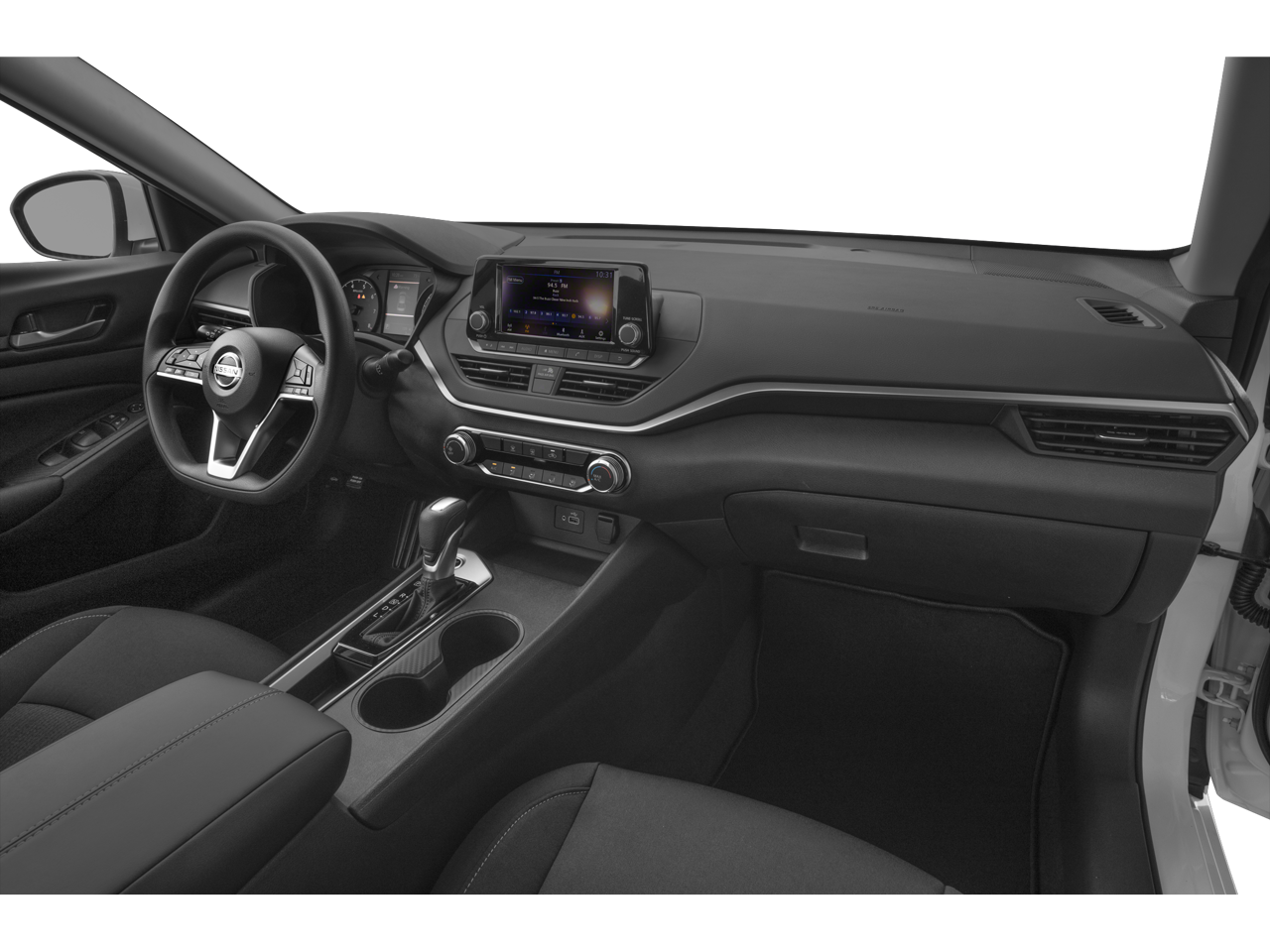 This Altima is well equipped with CVT with Xtronic, 4-Wheel Disc Brakes, 6 Speakers, ABS brakes, Air Conditioning, AM/FM radio, Auto High-beam Headlights, Brake assist, Bumpers: body-color, Cloth Seat Trim, Delay-off headlights, Driver door bin, Driver vanity mirror, Dual front impact airbags, Dual front side impact airbags, Electronic Stability Control, Four wheel independent suspension, Front anti-roll bar, Front Bucket Seats, Front Center Armrest, Front reading lights, Fully automatic headlights, Illuminated entry, Knee airbag, Low tire pressure warning, Occupant sensing airbag, Outside temperature display, Overhead airbag, Overhead console, Panic alarm, Passenger door bin, Passenger vanity mirror, Power door mirrors, Power steering, Power windows, Radio data system, Radio: AM/FM Audio System, Rear anti-roll bar, Rear reading lights, Rear seat center armrest, Rear side impact airbag, Rear window defroster, Remote keyless entry, Security system, Speed control, Speed-sensing steering, Speed-Sensitive Wipers, Split folding rear seat, Sport steering wheel, Steering wheel mounted audio controls, Tachometer, Telescoping steering wheel, Tilt steering wheel, Traction control, Trip computer, Variably intermittent wipers, and Wheels: 16" x 7" Steel w/Full Wheel Covers.