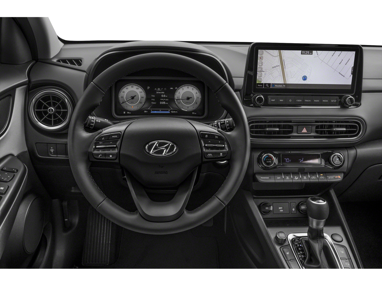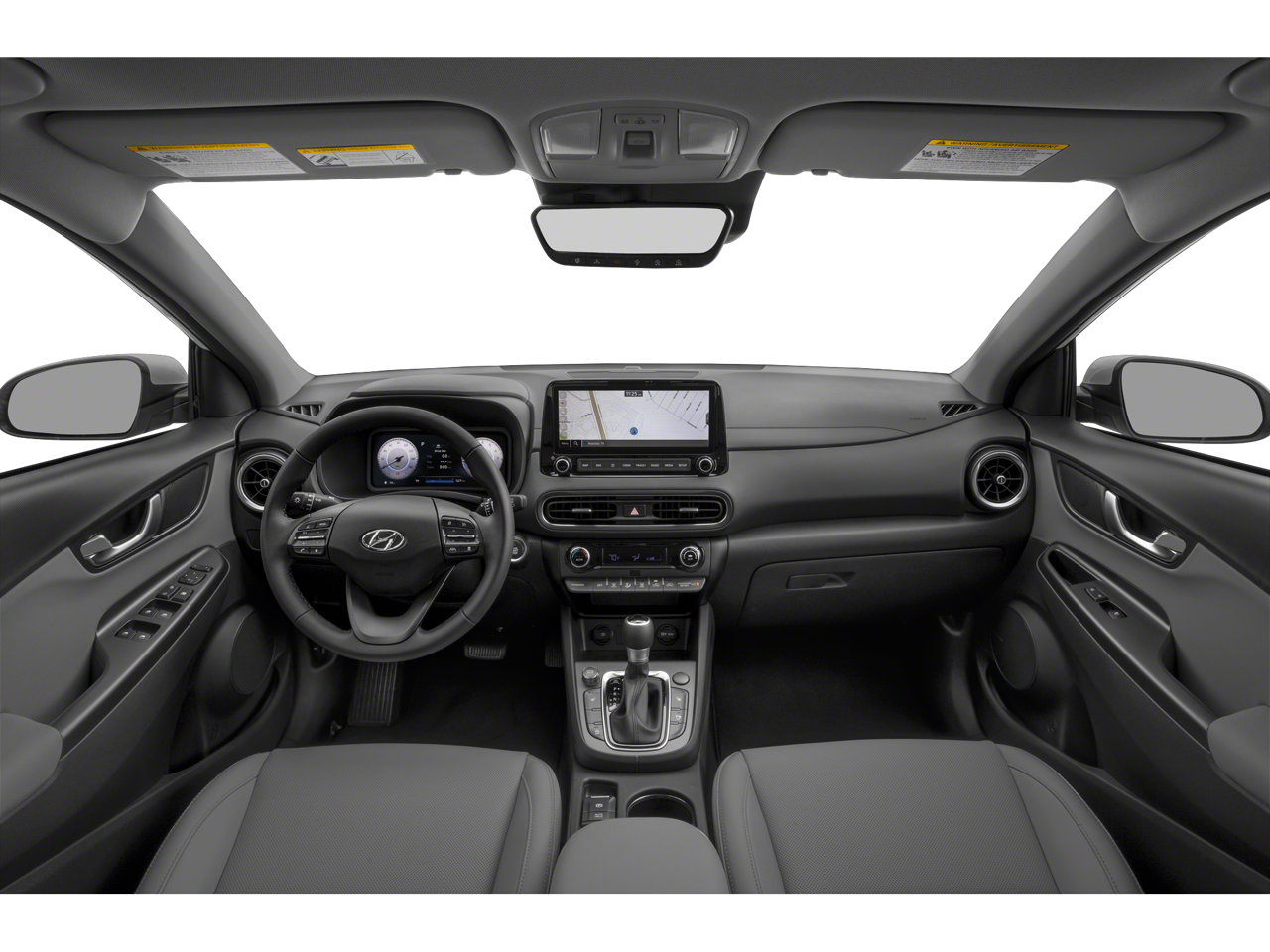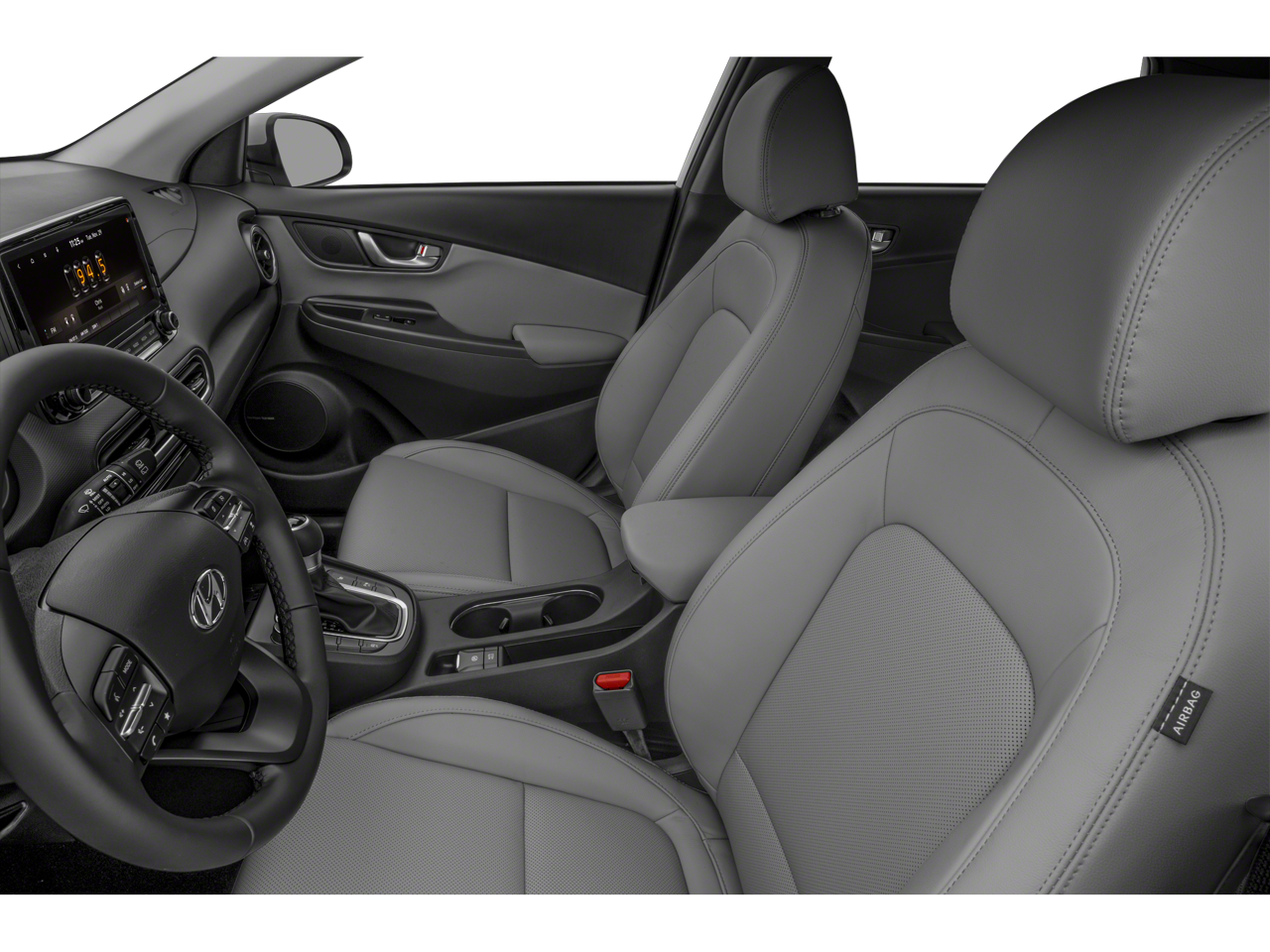 This Kona is well equipped with Cargo Package (Cargo Blocks, Cargo Net, and Cargo Tray), Option Group 01, 18" x 7.5J Alloy Wheels, 3.174 Axle Ratio, 4-Wheel Disc Brakes, 8 Speakers, ABS brakes, Air Conditioning, Alloy wheels, AM/FM radio: SiriusXM, Apple CarPlay & Android Auto, Auto High-beam Headlights, Auto-dimming Rear-View mirror, Automatic temperature control, Brake assist, Bumpers: body-color, Carpeted Floor Mats, Delay-off headlights, Driver door bin, Driver vanity mirror, Dual front impact airbags, Dual front side impact airbags, Electronic Stability Control, Emergency communication system: Blue Link Connected Car Service (3-year complimentary subscription), Exterior Parking Camera Rear, First Aid Kit, Four wheel independent suspension, Front anti-roll bar, Front Bucket Seats, Front Center Armrest, Front reading lights, Fully automatic headlights, Garage door transmitter: HomeLink, harman/kardon Speakers, Heated door mirrors, Heated Front Bucket Seats, Heated front seats, Illuminated entry, Leather Seat Trim, Leather Shift Knob, Leather steering wheel, Low tire pressure warning, Navigation System, Occupant sensing airbag, Outside temperature display, Overhead airbag, Overhead console, Panic alarm, Passenger door bin, Passenger vanity mirror, Power door mirrors, Power driver seat, Power moonroof, Power steering, Power windows, Radio: harman/kardon Premium Audio System, Rain sensing wipers, Rear anti-roll bar, Rear seat center armrest, Rear window defroster, Rear window wiper, Remote keyless entry, Security system, Speed control, Speed-sensing steering, Split folding rear seat, Spoiler, Steering wheel mounted audio controls, Tachometer, Telescoping steering wheel, Tilt steering wheel, Traction control, Trip computer, Turn signal indicator mirrors, Variably intermittent wipers, and Wheel Locks.