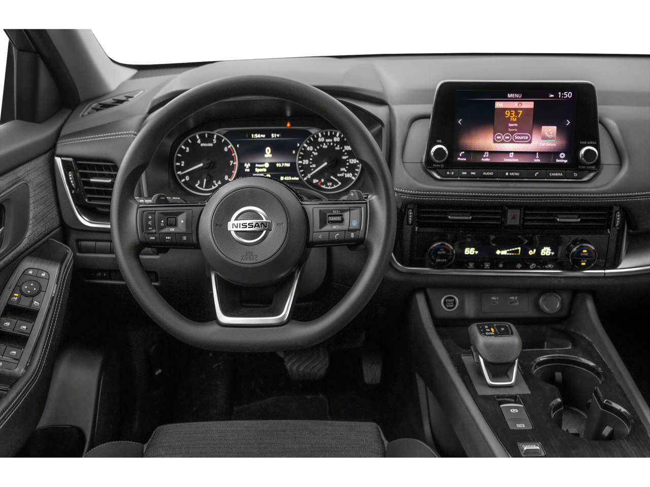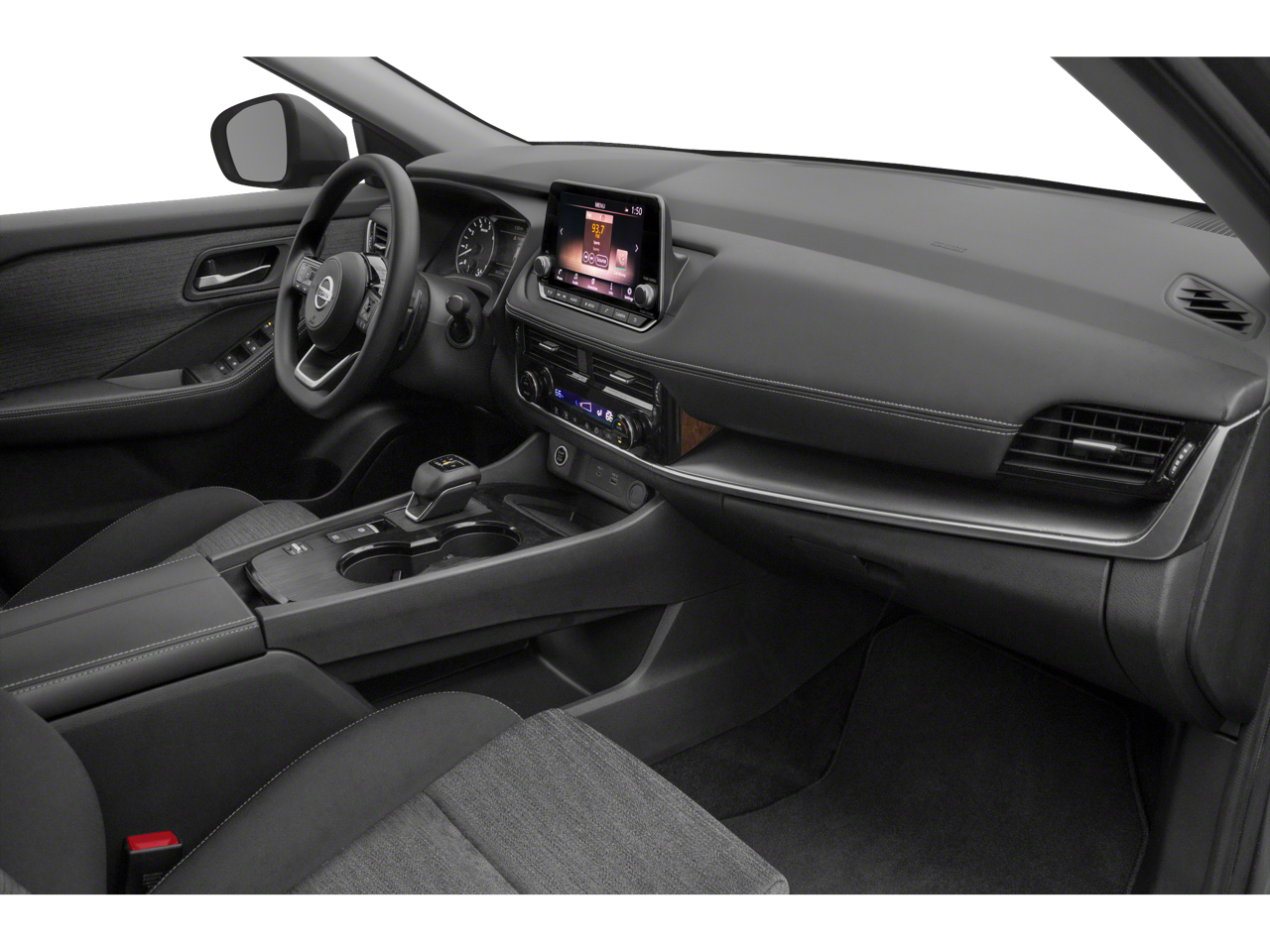 This Rogue is well equipped with AWD, 18" Aluminum Alloy Wheels, 4-Wheel Disc Brakes, 5.604 Axle Ratio, 6 Speakers, ABS brakes, Air Conditioning, Alloy wheels, AM/FM Radio, AM/FM radio: SiriusXM, Auto High-beam Headlights, Automatic temperature control, Black Splash Guards (Set of 4), Brake assist, Bumpers: body-color, Chrome Rear Bumper Protector, Cloth Seat Trim, Delay-off headlights, Driver door bin, Driver vanity mirror, Dual front impact airbags, Dual front side impact airbags, Electronic Stability Control, Emergency communication system: NissanConnect Services, First Aid Kit, Floor Mats w/1-Piece Cargo Area Protector, Four wheel independent suspension, Front anti-roll bar, Front Bucket Seats, Front Center Armrest, Front dual zone A/C, Front reading lights, Fully automatic headlights, Heated door mirrors, Illuminated entry, Knee airbag, Low tire pressure warning, NissanConnect featuring Apple CarPlay and Android Auto, Occupant sensing airbag, Outside temperature display, Overhead airbag, Overhead console, Panic alarm, Passenger door bin, Passenger vanity mirror, Power door mirrors, Power driver seat, Power steering, Power windows, Radio data system, Rear anti-roll bar, Rear Parking Sensors, Rear seat center armrest, Rear side impact airbag, Rear window defroster, Rear window wiper, Remote keyless entry, Speed control, Speed-Sensitive Wipers, Split folding rear seat, Spoiler, Steering wheel mounted audio controls, Tachometer, Telescoping steering wheel, Tilt steering wheel, Traction control, Trip computer, and Variably intermittent wipers.
