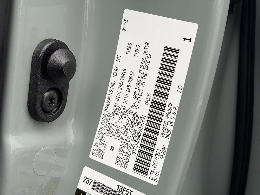 This Tundra is well equipped with SR5 Convenience Package (32 Gallon Fuel Tank, Blind Spot Monitor w/Lane Change Assist, and Parking Support Alert/Brake), TRD Off-Road Package (Bedside TRD Off Road Decal, Black Grille w/Chrome Surround, Front & Rear Mud Guards, Front Spoiler Delete, and TRD Off-Road Suspension w/Bilstein Shocks), 4WD, Black Cloth, 18" Alloy Wheels, 3.31 Axle Ratio, 4-Way Adjustable Front Bucket Seats, 4-Wheel Disc Brakes, 9 Speakers, ABS brakes, Air Conditioning, All Weather Floor Liners (TMS), Alloy wheels, AM/FM radio: SiriusXM, Apple CarPlay/Android Auto, Auto High-beam Headlights, Automatic temperature control, Brake assist, Bumpers: body-color, Delay-off headlights, Driver door bin, Driver vanity mirror, Dual front impact airbags, Dual front side impact airbags, Electronic Stability Control, Emergency communication system: Safety Connect (10-year trial), Exterior Parking Camera Rear, Fabric Seat Trim (FB), Front anti-roll bar, Front Bucket Seats, Front Center Armrest, Front fog lights, Front reading lights, Front wheel independent suspension, Fully automatic headlights, Heated door mirrors, Heated Leather Steering Wheel, Illuminated entry, Knee airbag, Low tire pressure warning, Occupant sensing airbag, Offroad Front Skid Plate, Outside temperature display, Overhead airbag, Overhead console, Panic alarm, Passenger door bin, Passenger vanity mirror, Power door mirrors, Power steering, Power windows, Radio data system, Radio: Audio Multimedia System, Rear reading lights, Rear step bumper, Rear window defroster, Remote keyless entry, Safety Connect, Security system, Speed control, Speed-sensing steering, Split folding rear seat, SR5 Painted Mirror, Stainless Steel Door Edge Guard (TMS), Steering wheel mounted audio controls, Tachometer, Telescoping steering wheel, Tilt steering wheel, Traction control, Trip computer, Variably intermittent wipers, Voltmeter, and Wheel Locks (TMS).