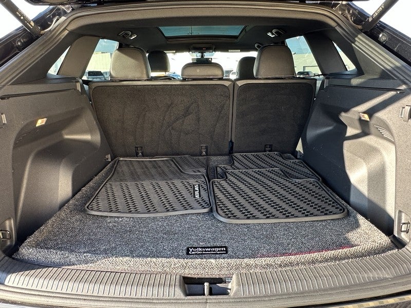 This Atlas Cross Sport is well equipped with 3.60 Axle Ratio, 4-Wheel Disc Brakes, 6 Speakers, ABS brakes, Air Conditioning, Alloy wheels, AM/FM radio: SiriusXM with 360L, Auto-dimming Rear-View mirror, Automatic temperature control, Brake assist, Bumpers: body-color, Compass, Delay-off headlights, Driver door bin, Driver vanity mirror, Dual front impact airbags, Dual front side impact airbags, Electronic Stability Control, Emergency communication system: VW Car-Net Safe & Secure 5-year, Exterior Parking Camera Rear, Four wheel independent suspension, Front anti-roll bar, Front Bucket Seats, Front Center Armrest, Front dual zone A/C, Front fog lights, Front reading lights, Fully automatic headlights, Heated Comfort Front Bucket Seats, Heated door mirrors, Heated front seats, Illuminated entry, Leather Shift Knob, Low tire pressure warning, Occupant sensing airbag, Outside temperature display, Overhead airbag, Overhead console, Panic alarm, Passenger door bin, Passenger vanity mirror, Perforated V-Tex Leatherette Seating Surfaces, Power door mirrors, Power driver seat, Power Liftgate, Power steering, Power windows, Radio data system, Radio: MIB3 Composition Media w/8" Touchscreen, Rain sensing wipers, Rear anti-roll bar, Rear reading lights, Rear seat center armrest, Rear window defroster, Rear window wiper, Remote keyless entry, Security system, Speed control, Speed-sensing steering, Split folding rear seat, Spoiler, Standard Suspension, Steering wheel mounted audio controls, Tachometer, Telescoping steering wheel, Tilt steering wheel, Traction control, Trip computer, Turn signal indicator mirrors, Variably intermittent wipers, and Wheels: 20" x 8J 5-Spoke Silver Painted Alloy.