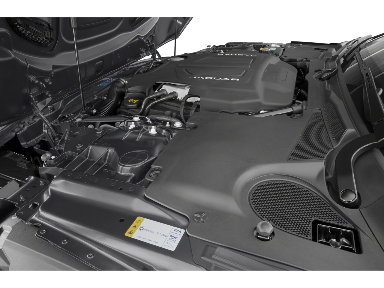 This F-TYPE is well equipped with 10 Speakers, 4-Wheel Disc Brakes, ABS brakes, Adaptive suspension, Air Conditioning, Alloy wheels, AM/FM radio: SiriusXM, Apple CarPlay/Android Auto, Auto High-beam Headlights, Auto tilt-away steering wheel, Auto-dimming door mirrors, Auto-dimming Rear-View mirror, Automatic temperature control, Brake assist, Bumpers: body-color, Delay-off headlights, Driver door bin, Driver vanity mirror, Dual front impact airbags, Dual front side impact airbags, Electronic Stability Control, Emergency communication system: Remote SOS Emergency Call, Exterior Parking Camera Rear, Four wheel independent suspension, Front anti-roll bar, Front Bucket Seats, Front Center Armrest, Front dual zone A/C, Front reading lights, Fully automatic headlights, Garage door transmitter: HomeLink, Grained Leather & Suedecloth Seating Surfaces, Heated door mirrors, Heated front seats, Heated steering wheel, Illuminated entry, Leather Shift Knob, Low tire pressure warning, Memory seat, Navigation System, Occupant sensing airbag, Outside temperature display, Overhead airbag, Overhead console, Panic alarm, Passenger door bin, Passenger vanity mirror, Power door mirrors, Power driver seat, Power Liftgate, Power passenger seat, Power steering, Power windows, Radio data system, Radio: Meridian 380W Audio System, Rain sensing wipers, Rear anti-roll bar, Rear fog lights, Rear window defroster, Remote keyless entry, Security system, Speed control, Speed-sensing steering, Spoiler, Sport 12-Way Electric & Heated Front Seats, Steering wheel memory, Steering wheel mounted audio controls, Tachometer, Telescoping steering wheel, Tilt steering wheel, Traction control, Trip computer, Turn signal indicator mirrors, Variably intermittent wipers, and Wheels: 20" Style 5060 5 Spoke Gloss Sparkle Silver.