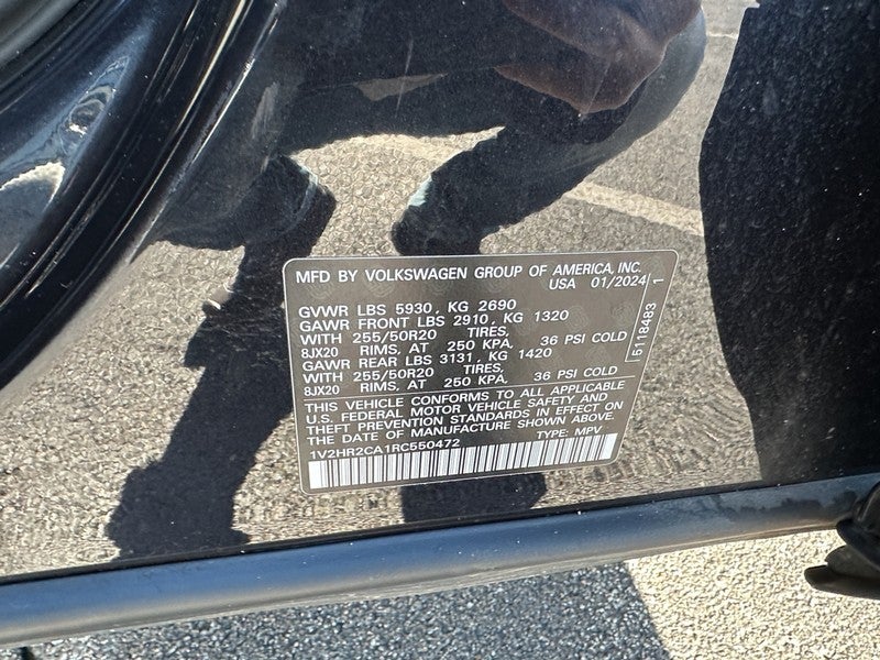 This Atlas is well equipped with 3.60 Axle Ratio, 3rd row seats: split-bench, 4-Wheel Disc Brakes, 6 Speakers, ABS brakes, Air Conditioning, Alloy wheels, AM/FM radio: SiriusXM with 360L, Auto-dimming Rear-View mirror, Automatic temperature control, Brake assist, Bumpers: body-color, Compass, Delay-off headlights, Driver door bin, Driver vanity mirror, Dual front impact airbags, Dual front side impact airbags, Electronic Stability Control, Emergency communication system: VW Car-Net Safe & Secure 5-year, Exterior Parking Camera Rear, Four wheel independent suspension, Front anti-roll bar, Front Bucket Seats, Front Center Armrest, Front dual zone A/C, Front fog lights, Front reading lights, Fully automatic headlights, Heated door mirrors, Heated front seats, Heated steering wheel, Heated/Actively Ventilated Front Bucket Seats, Illuminated entry, Low tire pressure warning, Occupant sensing airbag, Outside temperature display, Overhead airbag, Overhead console, Panic alarm, Passenger door bin, Passenger vanity mirror, Perforated V-Tex Leatherette Seating Surfaces, Power door mirrors, Power driver seat, Power Liftgate, Power steering, Power windows, Radio data system, Radio: MIB3 Composition Media, Rain sensing wipers, Rear air conditioning, Rear anti-roll bar, Rear reading lights, Rear seat center armrest, Rear window defroster, Rear window wiper, Remote keyless entry, Security system, Speed control, Speed-sensing steering, Split folding rear seat, Spoiler, Standard Suspension, Steering wheel mounted audio controls, Tachometer, Telescoping steering wheel, Tilt steering wheel, Traction control, Trip computer, Turn signal indicator mirrors, Variably intermittent wipers, Ventilated front seats, and Wheels: 20" 2-Tone Machined Alloy.