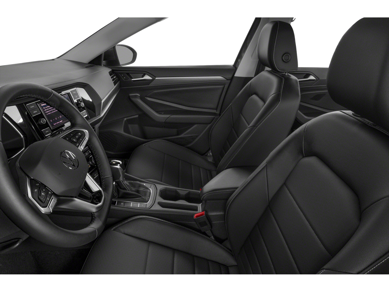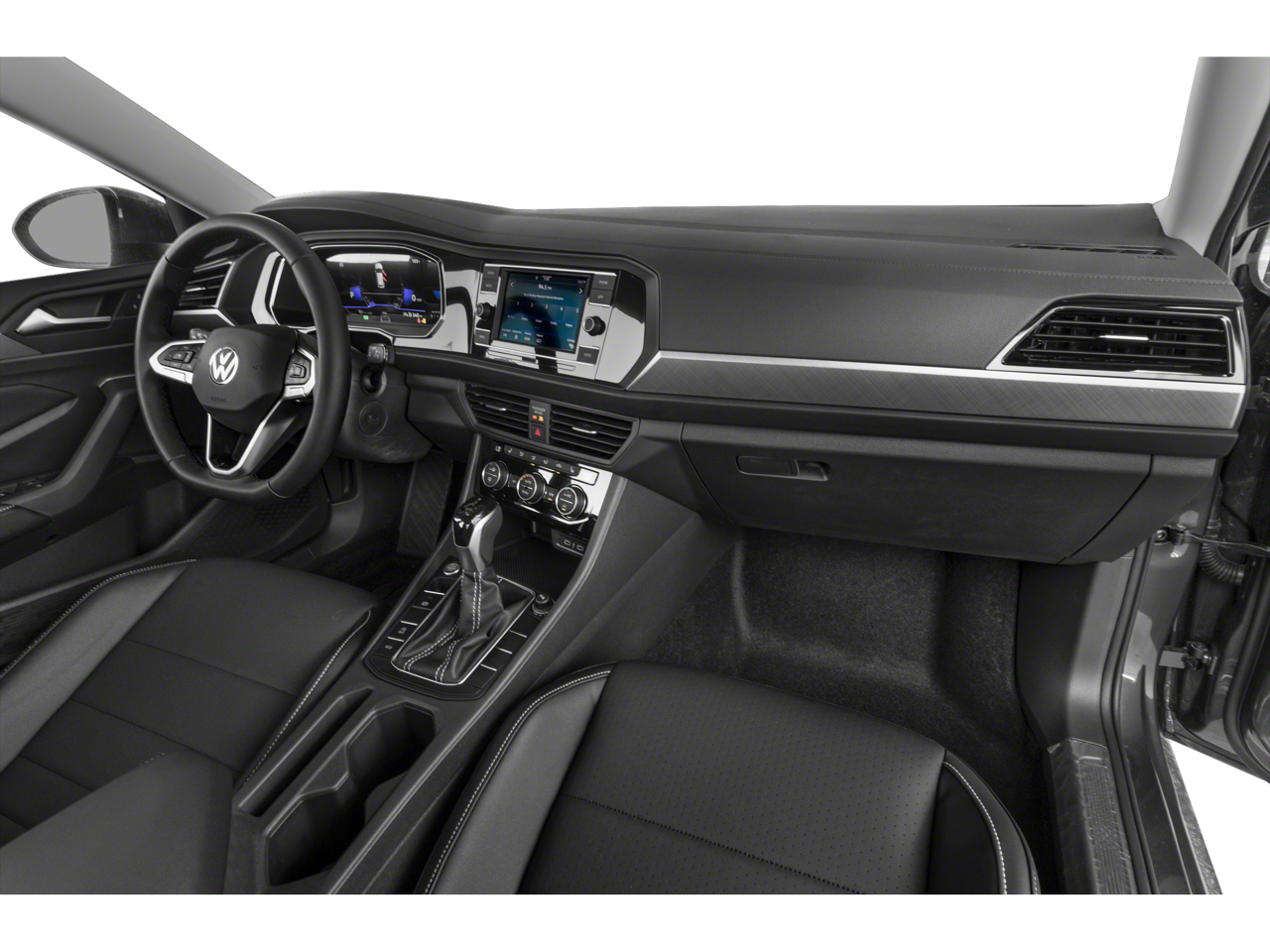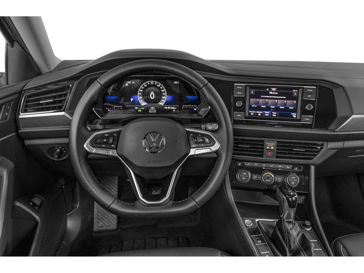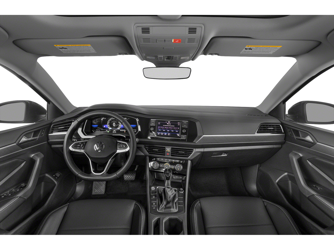 This Jetta is well equipped with Black Wheel Package (Wheels: 17" Twin 5-Spoke Dark Graphite Painted Alloy), Panoramic Sunroof Package (Dual Front Reading Lights, Illuminated Vanity Mirrors, Overhead Storage Compartment, and Power Tilting & Sliding Panoramic Sunroof), Titan Black Premium Synthetic, 4 Speakers, 4-Wheel Disc Brakes, ABS brakes, Active Blind Spot Monitor, Air Conditioning, Alloy wheels, Auto-dimming Rear-View mirror, Auto-Dimming Rearview Mirror w/HomeLink Connect, Automatic temperature control, Brake assist, Bumpers: body-color, Delay-off headlights, Driver door bin, Driver vanity mirror, Dual front impact airbags, Dual front side impact airbags, Electronic Stability Control, Emergency communication system: VW Car-Net Safe & Secure 5-year, Exterior Parking Camera Rear, Front anti-roll bar, Front Bucket Seats, Front Center Armrest, Front dual zone A/C, Front wheel independent suspension, Fully automatic headlights, Heated door mirrors, Heated Front Seats, Heated front seats, Heavy Duty Trunk Liner w/VW CarGo Blocks, Illuminated entry, Leather Shift Knob, Leather steering wheel, Low tire pressure warning, Occupant sensing airbag, Outside temperature display, Overhead airbag, Overhead console, Panic alarm, Passenger door bin, Passenger vanity mirror, Power door mirrors, Power driver seat, Power steering, Power windows, Radio data system, Radio: MIB3 Composition Color w/6.5" Touchscreen, Rain sensing wipers, Rear anti-roll bar, Rear reading lights, Rear seat center armrest, Rear window defroster, Remote keyless entry, Rubber Monster Mats Kit (Set of 4), Speed control, Speed-sensing steering, Split folding rear seat, Steering wheel mounted audio controls, Tachometer, Telescoping steering wheel, Tilt steering wheel, Traction control, Trip computer, V-Tex Leatherette Seat Trim, Variably intermittent wipers, VW Care, and Wheels: 17" Twin 5-Spoke Silver Painted Alloy.