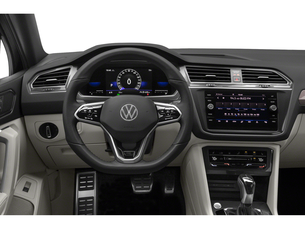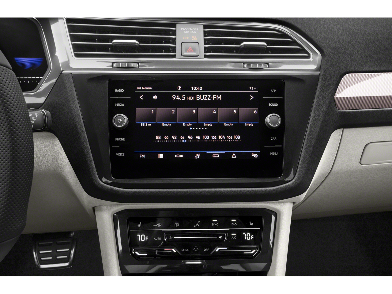 This Tiguan is well equipped with AWD, 3.33 Axle Ratio, 4-Wheel Disc Brakes, 4-Wheel Independent Suspension, 6 Speakers, ABS brakes, Air Conditioning, Alloy wheels, AM/FM radio: SiriusXM with 360L, Auto-dimming Rear-View mirror, Automatic temperature control, Brake assist, Bumpers: body-color, Compass, Delay-off headlights, Driver door bin, Driver vanity mirror, Dual front impact airbags, Dual front side impact airbags, Electronic Stability Control, Emergency communication system: VW Car-Net Safe & Secure 5-year, Exterior Parking Camera Rear, Four wheel independent suspension, Front anti-roll bar, Front Bucket Seats, Front Center Armrest, Front dual zone A/C, Front reading lights, Fully automatic headlights, Heated door mirrors, Heated Front Seats, Heated front seats, Illuminated entry, Leather Shift Knob, Leather steering wheel, Low tire pressure warning, Occupant sensing airbag, Outside temperature display, Overhead airbag, Overhead console, Panic alarm, Passenger door bin, Passenger vanity mirror, Perforated V-Tex Leatherette Seating Surfaces, Power door mirrors, Power driver seat, Power Liftgate, Power moonroof, Power steering, Power windows, Radio data system, Radio: MIB3 Composition Media AM/FM/HD, Rain sensing wipers, Rear anti-roll bar, Rear reading lights, Rear seat center armrest, Rear window defroster, Rear window wiper, Remote keyless entry, Security system, Speed control, Speed-sensing steering, Split folding rear seat, Spoiler, Sport steering wheel, Steering wheel mounted audio controls, Tachometer, Telescoping steering wheel, Tilt steering wheel, Traction control, Trip computer, Turn signal indicator mirrors, Variably intermittent wipers, and Wheels: 19" Black Painted Twin 5-Spoke Alloy.