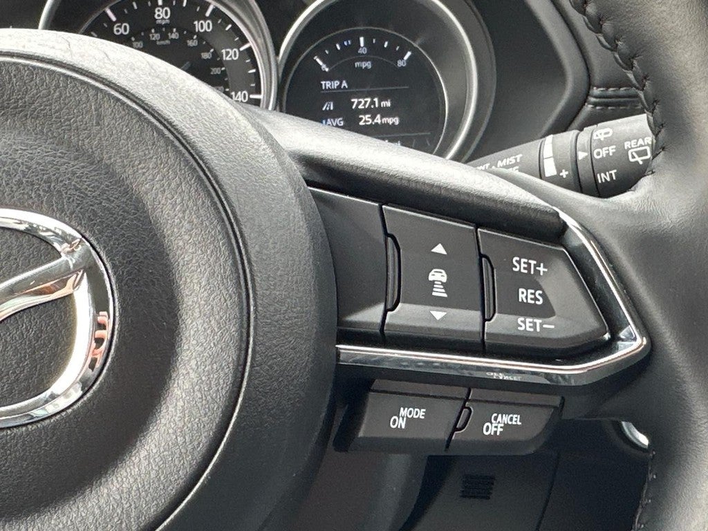 This Mazda CX-5 is well equipped with Mazda Certified Pre-Owned Certified, 4-Wheel Disc Brakes, 6 Speakers, ABS brakes, Air Conditioning, Alloy wheels, AM/FM radio, AppLink/Apple CarPlay and Android Auto, Auto High-beam Headlights, Automatic temperature control, Brake assist, Bumpers: body-color, Delay-off headlights, Driver door bin, Driver vanity mirror, Dual front impact airbags, Dual front side impact airbags, E911 Automatic Emergency Notification, Electronic Stability Control, Emergency communication system: MAZDA CONNECT, Exterior Parking Camera Rear, Four wheel independent suspension, Front anti-roll bar, Front Bucket Seats, Front Center Armrest w/Storage, Front dual zone A/C, Front reading lights, Fully automatic headlights, Heated Front Bucket Seats, Heated front seats, Illuminated entry, Infotainment System Voice Command, Leather Shift Knob, Leather steering wheel, Leatherette Seat Trim, Low tire pressure warning, Multifunction Commander Control, Occupant sensing airbag, Outside temperature display, Overhead airbag, Overhead console, Pandora, Panic alarm, Passenger door bin, Passenger vanity mirror, Power door mirrors, Power driver seat, Power steering, Power windows, Radio Broadcast Data System Program Information, Radio data system, Radio: AM/FM/HD Audio System, Rain sensing wipers, Rear anti-roll bar, Rear reading lights, Rear seat center armrest, Rear window defroster, Rear window wiper, Remote keyless entry, SMS Text Msg Audio Delivery & Reply, Speed control, Speed-sensing steering, Split folding rear seat, Spoiler, Steering wheel mounted audio controls, Tachometer, Telescoping steering wheel, Tilt steering wheel, Traction control, Trip computer, Turn signal indicator mirrors, Variably intermittent wipers, and Wheels: 17" x 7J Aluminum Alloy.