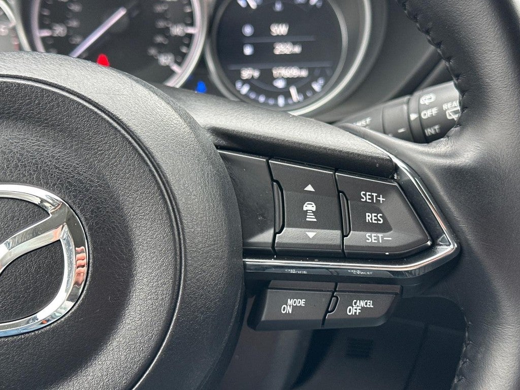This Mazda CX-5 is well equipped with Mazda Certified Pre-Owned Certified, 4-Wheel Disc Brakes, 6 Speakers, ABS brakes, Air Conditioning, Alloy wheels, AM/FM radio, AppLink/Apple CarPlay and Android Auto, Auto High-beam Headlights, Automatic temperature control, Brake assist, Bumpers: body-color, Delay-off headlights, Driver door bin, Driver vanity mirror, Dual front impact airbags, Dual front side impact airbags, E911 Automatic Emergency Notification, Electronic Stability Control, Emergency communication system: MAZDA CONNECT, Exterior Parking Camera Rear, Four wheel independent suspension, Front anti-roll bar, Front Bucket Seats, Front Center Armrest w/Storage, Front dual zone A/C, Front reading lights, Fully automatic headlights, Heated Front Bucket Seats, Heated front seats, Illuminated entry, Infotainment System Voice Command, Leather Shift Knob, Leather steering wheel, Leatherette Seat Trim, Low tire pressure warning, Multifunction Commander Control, Occupant sensing airbag, Outside temperature display, Overhead airbag, Overhead console, Pandora, Panic alarm, Passenger door bin, Passenger vanity mirror, Power door mirrors, Power driver seat, Power steering, Power windows, Radio Broadcast Data System Program Information, Radio data system, Radio: AM/FM/HD Audio System, Rain sensing wipers, Rear anti-roll bar, Rear reading lights, Rear seat center armrest, Rear window defroster, Rear window wiper, Remote keyless entry, SMS Text Msg Audio Delivery & Reply, Speed control, Speed-sensing steering, Split folding rear seat, Spoiler, Steering wheel mounted audio controls, Tachometer, Telescoping steering wheel, Tilt steering wheel, Traction control, Trip computer, Turn signal indicator mirrors, Variably intermittent wipers, and Wheels: 17" x 7J Aluminum Alloy.