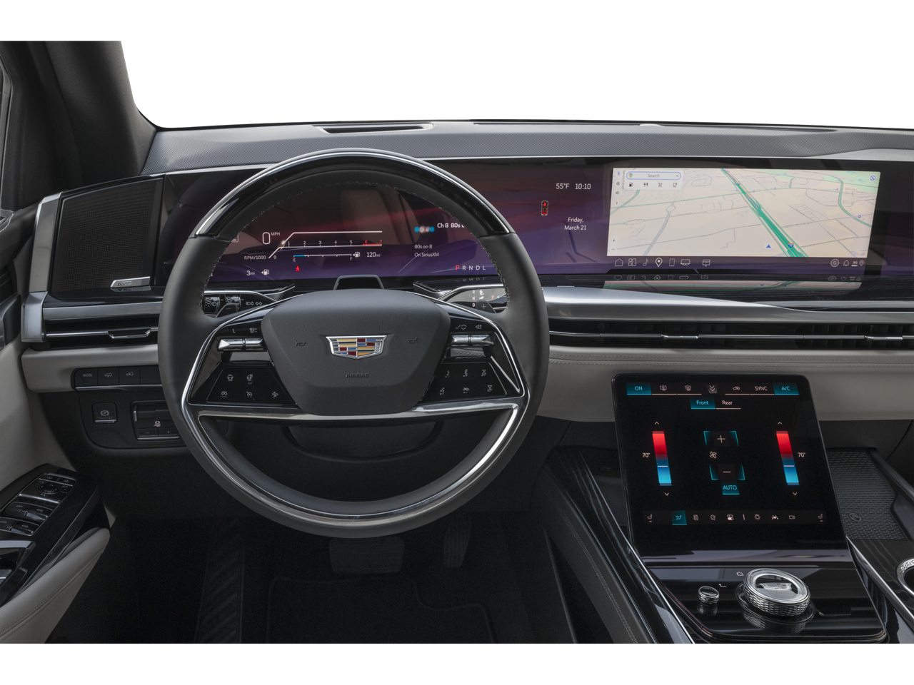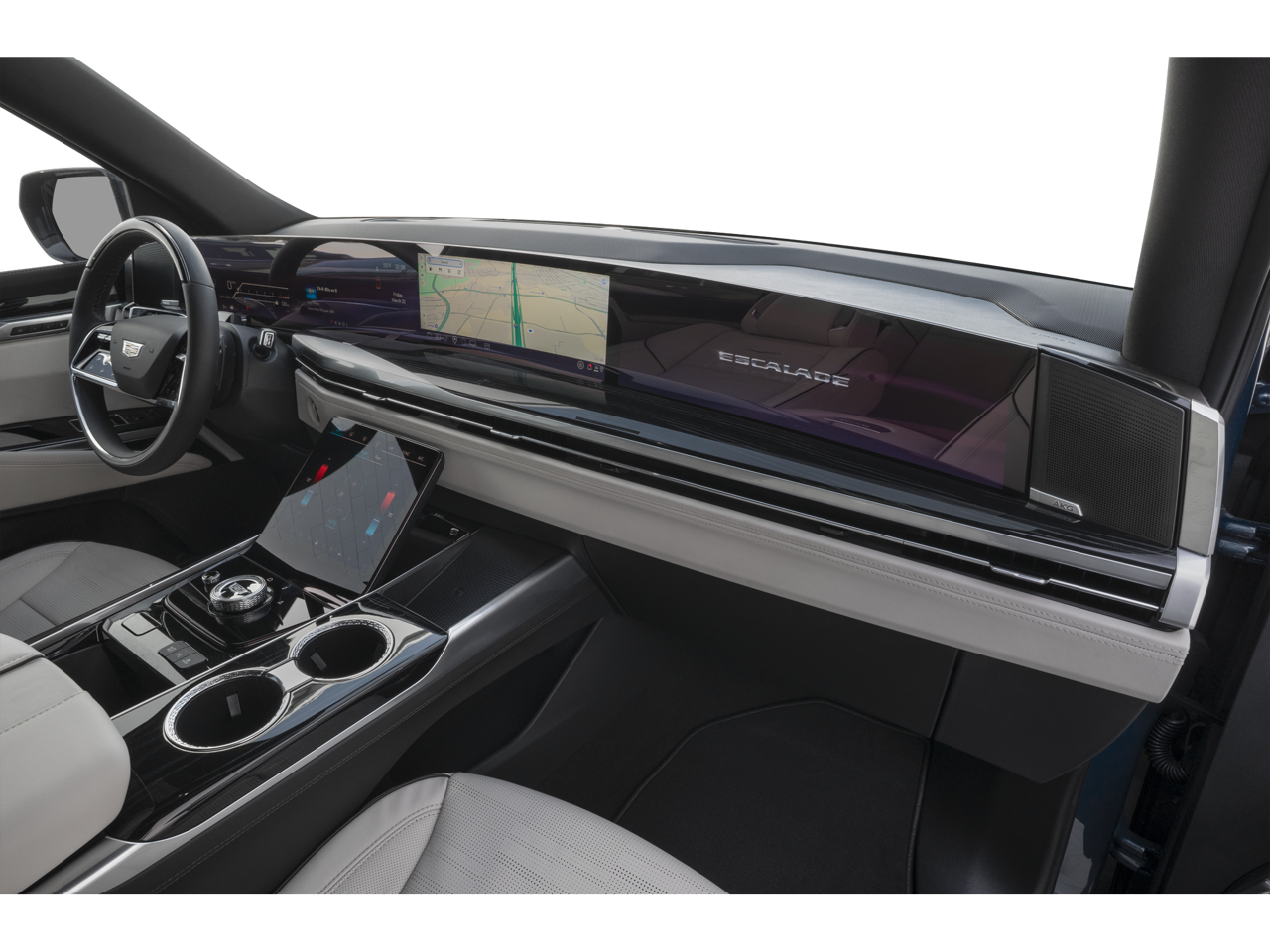 This Escalade is well equipped with Preferred Equipment Group 1SH (2-Speed Active Transfer Case, AKG Studio Reference 36-Speaker Audio System, Blind Zone Steering Assist with Trailering, Door Lock and Latch Shields, Electronic Limited-Slip Differential, Floor Console with Covered Storage, Front Auxiliary 12-Volt Power Outlet, Glass Breakage Sensor, Heated and Ventilated Driver and Front Passenger Seats, Hitch Guidance with Hitch View, Illuminating Front and Rear Sill Plates, Integrated Trailer Brake Controller, Magnetic Ride Control Suspension, Next Generation Active Noise Cancellation, Night Vision, Platinum Interior Trim, Power Lumbar Massage Driver Seat, Power Lumbar Massage Front Passenger Seat, Power Panoramic Tilt-Sliding Sunroof, Power-Retractable Assist Steps, Rear Seat Entertainment System, Reconfigurable Full-Color Head-Up Display, Smart Trailer Integration Indicator, Theft-Deterrent Alarm System, Trailering App, Trailering Assist Guidelines, Vehicle Inclination Sensor, Vehicle Interior Movement Sensor, Wheel Locks, and Wheels: 22" 18-Spoke Alloy), Touring Package (Air Ride Adaptive Suspension, Power Open/Close Doors, and Soft Closing Front and Rear Doors), 4WD, Sheer Gray With Jet Black Accents Leather, 2-Presets Memory For Driver Seat Adjuster, 3.23 Axle Ratio, 3rd row seats: split-bench, 4-Way Power Driver Lumbar Seat Adjuster, 4-Way Power Front Passenger Lumbar Seat Adjuster, 4-Wheel Disc Brakes, 8-Way Power Driver Seat Adjuster, 8-Way Power Front Passenger Seat Adjuster, ABS brakes, Adaptive suspension, Air Conditioning, Alloy wheels, AM/FM radio: SiriusXM with 360L, Apple CarPlay/Android Auto, Audio memory, Auto High-beam Headlights, Auto tilt-away steering wheel, Auto-dimming door mirrors, Auto-dimming Rear-View mirror, Automatic temperature control, Brake assist, Bumpers: body-color, Compass, Delay-off headlights, Driver door bin, Driver Seat Power Bolster, Driver vanity mirror, Dual front impact airbags, Dual front side impact airbags, Electronic Stability Control, Emergency communication system: OnStar Services capable, Exterior Parking Camera Rear, Four wheel independent suspension, Front anti-roll bar, Front Bucket Seats, Front Center Armrest w/Storage, Front dual zone A/C, Front License Plate Bracket, Front Passenger Seat Power Bolster, Front reading lights, Full Semi-Aniline Leather Seats with Mini-Chevron, Fully automatic headlights, Garage door transmitter, Genuine wood console insert, Genuine wood dashboard insert, Genuine wood door panel insert, Headphones, Heads-Up Display, Heated door mirrors, Heated Driver and Front Passen