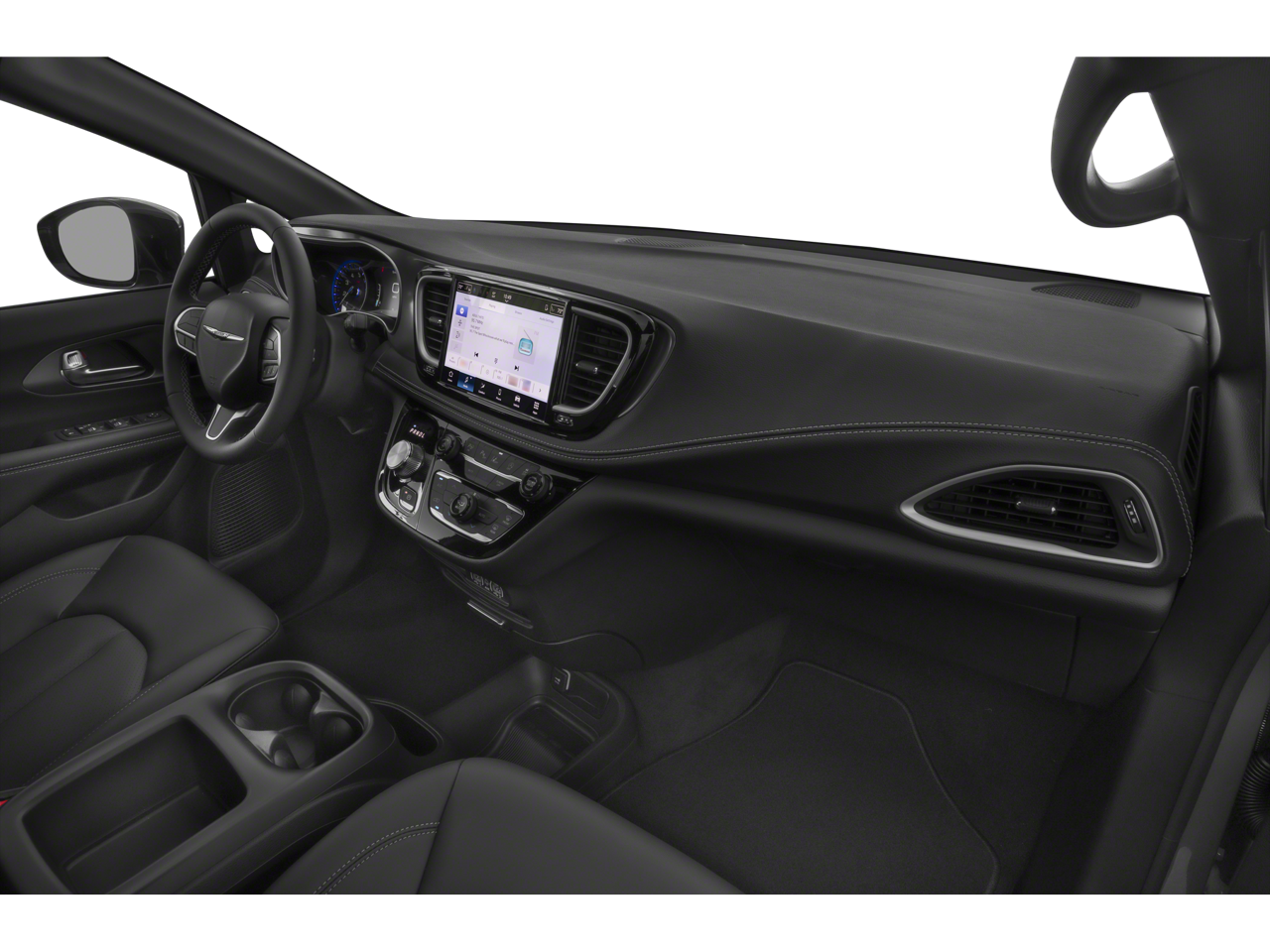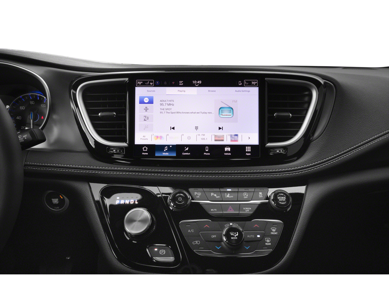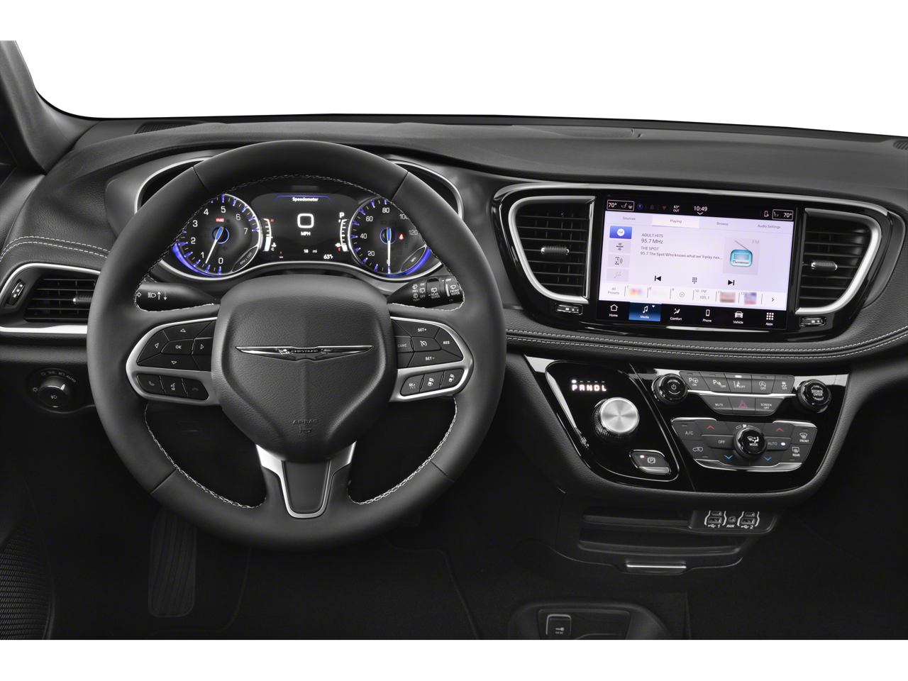 This Pacifica is well equipped with Quick Order Package 27P, 13 Speakers, 3.25 Axle Ratio, 3rd row seats: split-bench, 4-Wheel Disc Brakes, ABS brakes, Air Conditioning, Alloy wheels, AM/FM radio: SiriusXM 360L, Apple CarPlay/Android Auto, Audio memory, Auto-dimming Rear-View mirror, Automatic temperature control, Black Seats, Brake assist, Bumpers: body-color, Compass, Delay-off headlights, Driver door bin, Driver vanity mirror, Driver's Seat Mounted Armrest, Dual front impact airbags, Dual front side impact airbags, Electronic Stability Control, Emergency communication system: Chrysler Connect, Four wheel independent suspension, Front anti-roll bar, Front Bucket Seats, Front dual zone A/C, Front fog lights, Front reading lights, Fully automatic headlights, Garage door transmitter, Heated door mirrors, Heated front seats, Heated rear seats, Heated steering wheel, Illuminated entry, Integrated Active Noise Cancellation, Knee airbag, Low tire pressure warning, Manufacturer's Statement of Origin, Memory seat, Nappa Leather Bucket Seats with S Logo, Navigation System, Occupant sensing airbag, Outside temperature display, Overhead airbag, Overhead console, Panic alarm, ParkView Rear Back-Up Camera, Passenger door bin, Passenger seat mounted armrest, Passenger vanity mirror, Power door mirrors, Power driver seat, Power Liftgate, Power moonroof, Power passenger seat, Power steering, Power windows, Radio data system, Radio: Uconnect 5 Nav with 10.1" Display, Rain sensing wipers, Rear air conditioning, Rear reading lights, Rear window defroster, Rear window wiper, Reclining 3rd row seat, Remote keyless entry, Roof rack, Security system, Speed control, Split folding rear seat, Spoiler, Steering wheel mounted audio controls, Tachometer, Telescoping steering wheel, Tilt steering wheel, Touring Suspension, Traction control, Trip computer, Turn signal indicator mirrors, Variably intermittent wipers, Ventilated front seats, Voltmeter, and Wheels: 20" x 7.5" S-Model Aluminum Design 1.